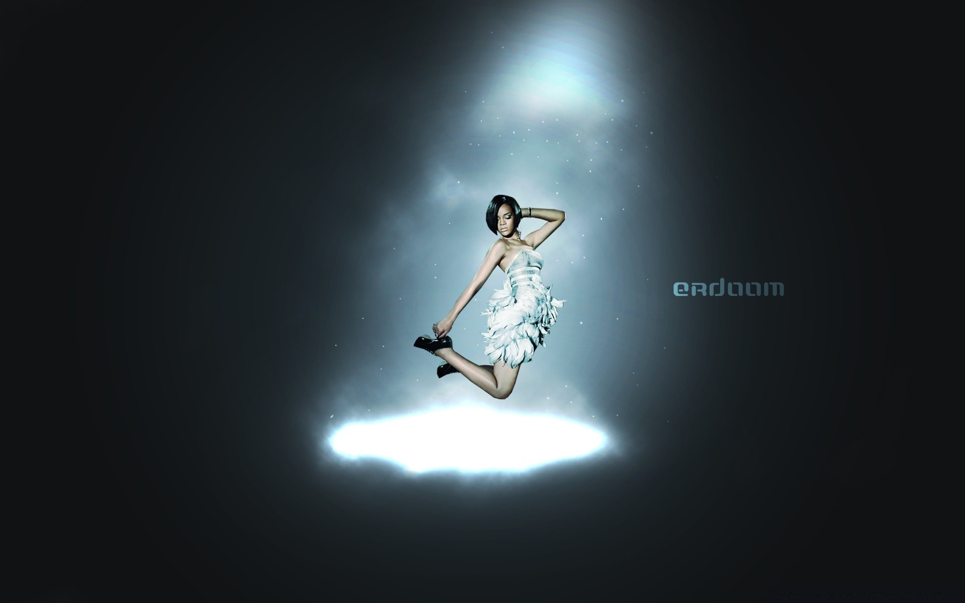 A cantora rihanna em um biquíni azul em uma praia tropicalA cantora Rihanna em um biquíni azul em uma praia tropical