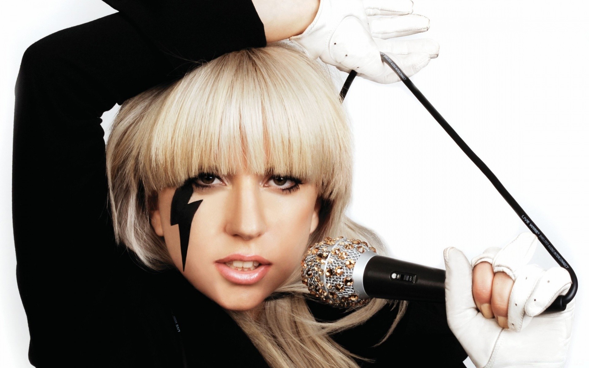 Cantora com cabelo loiro e camiseta branca