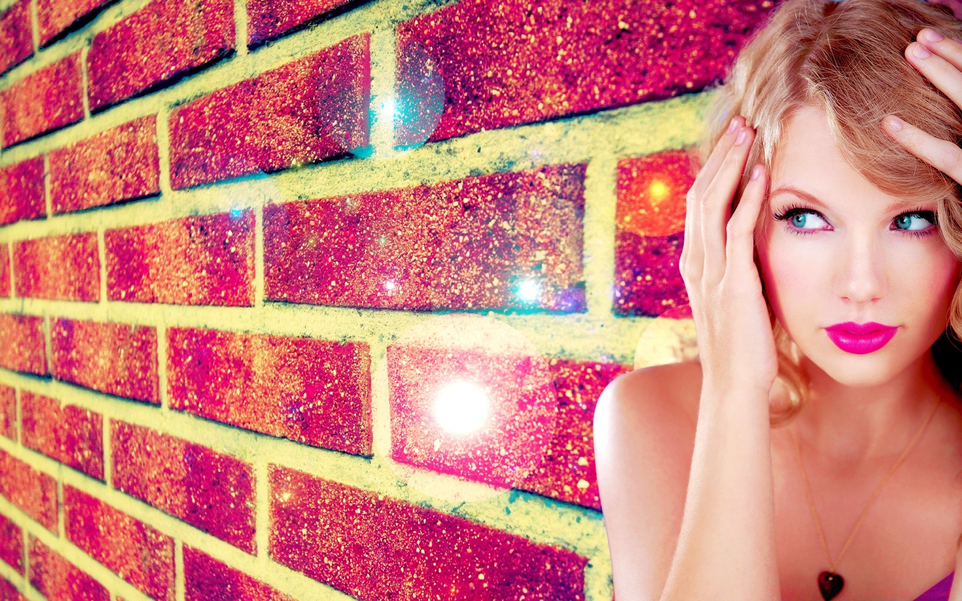 Taylor swift com batom rosa brilhante