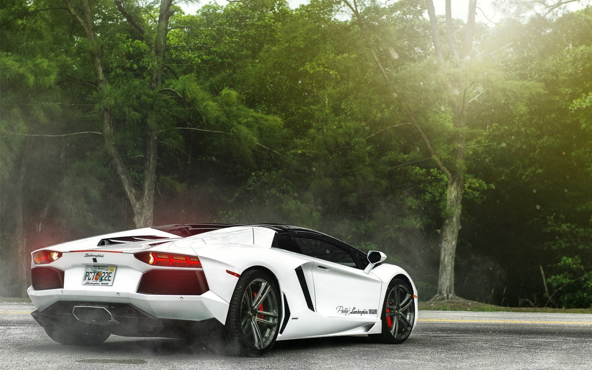 Carro esportivo na estrada na floresta