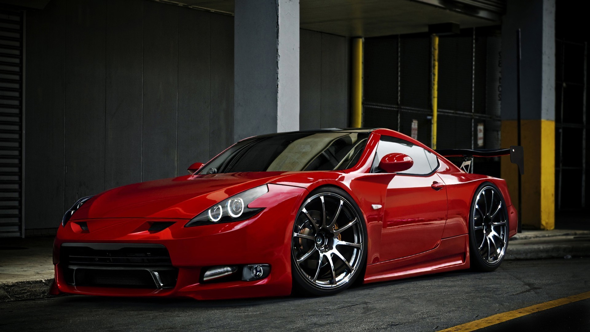 Carro esportivo vermelho no estacionamento