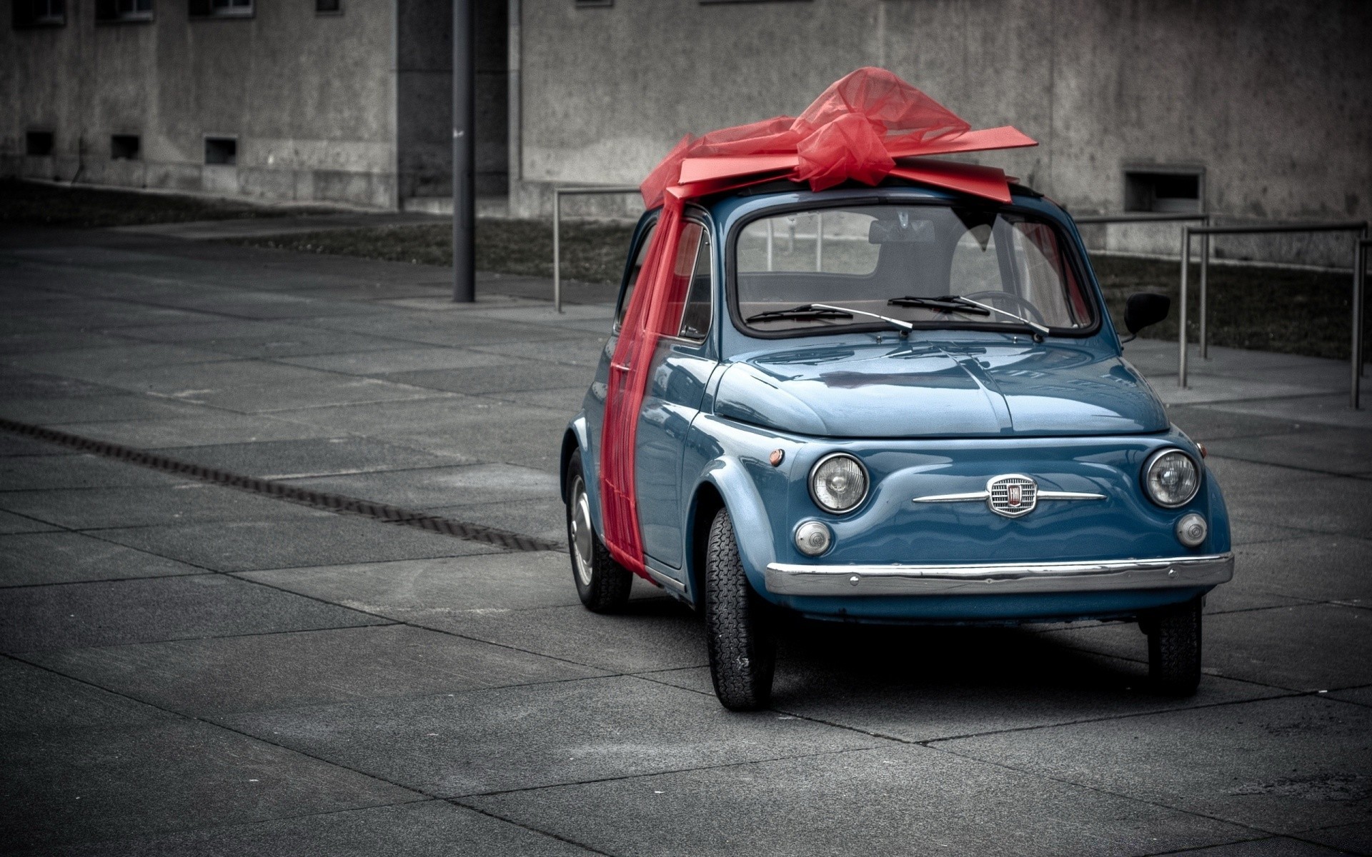 Pequena máquina azul com arco de presente
