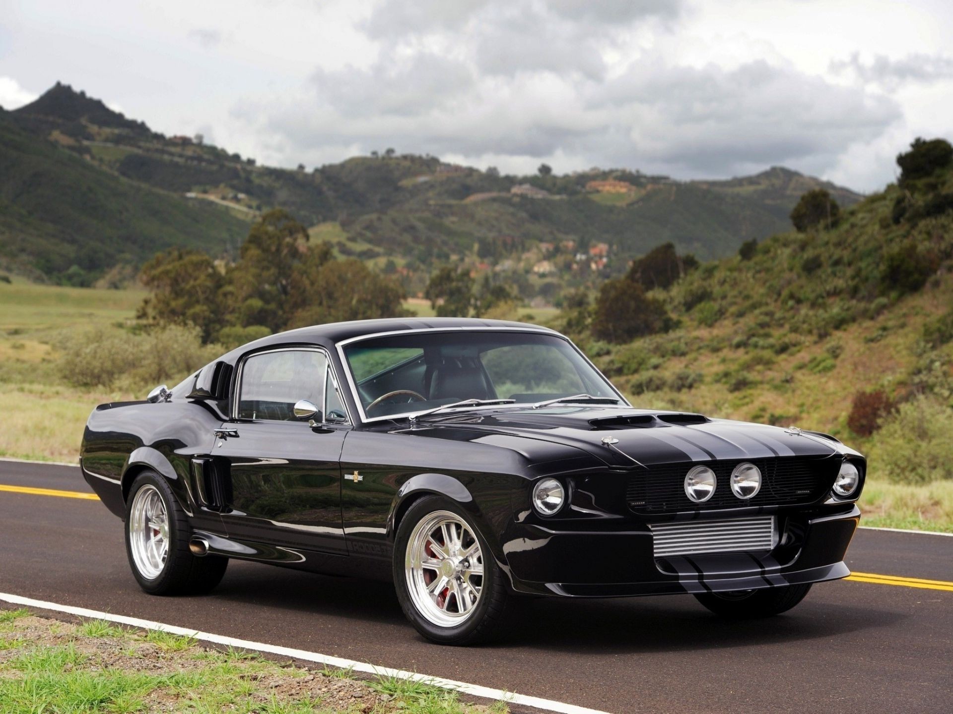 Carro preto legal no asfalto preto