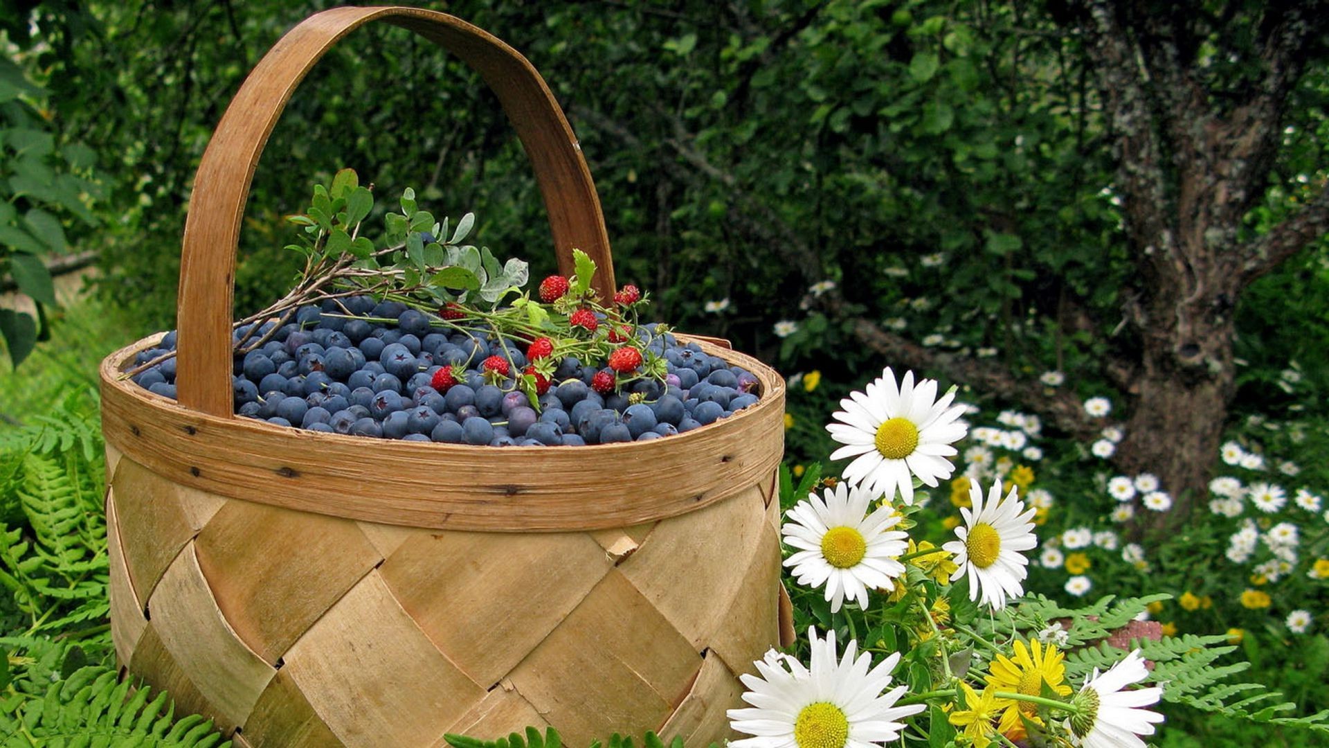 Cesta de bétula com mirtilo