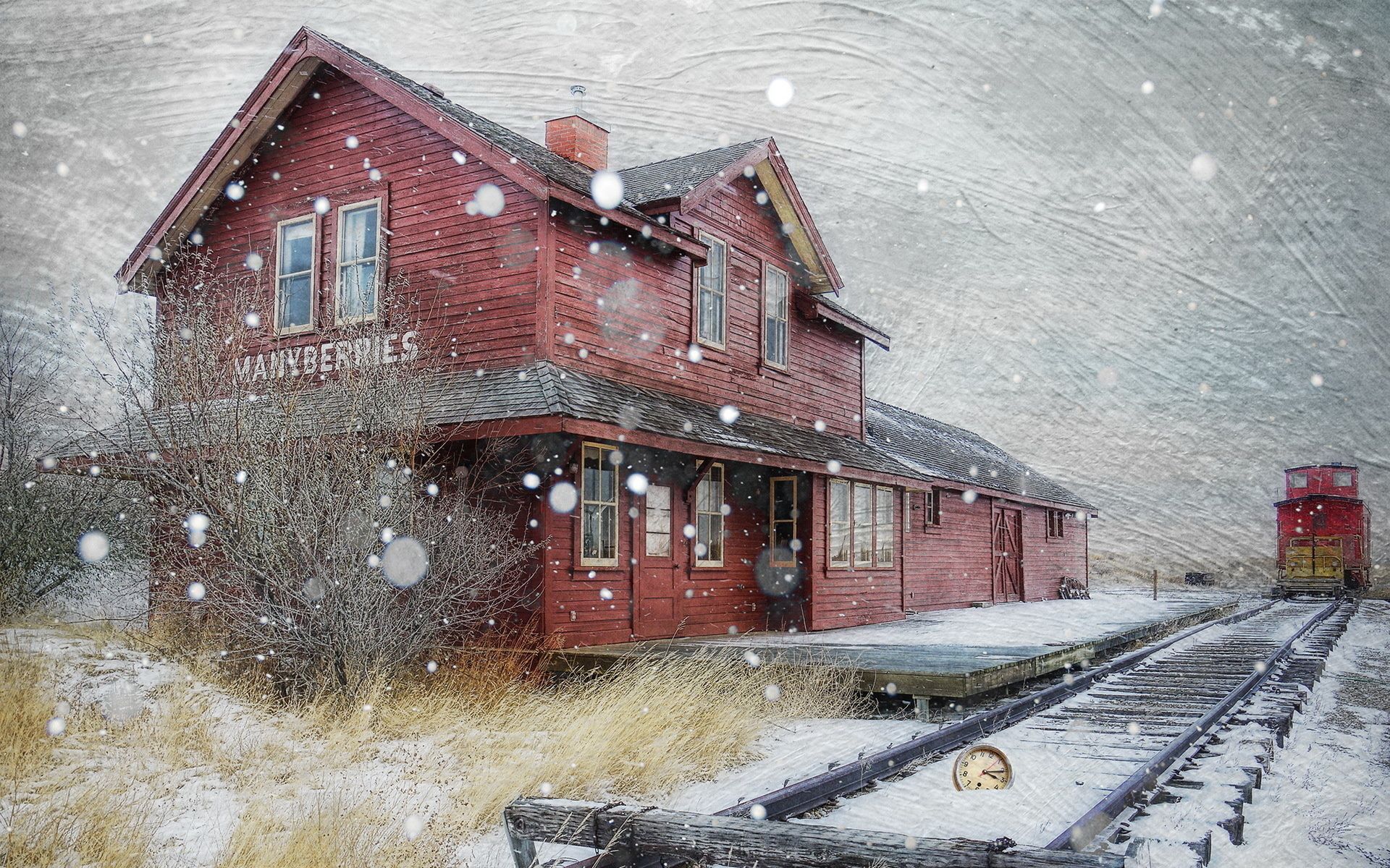 Vista Casa, trilhos, trem no inverno