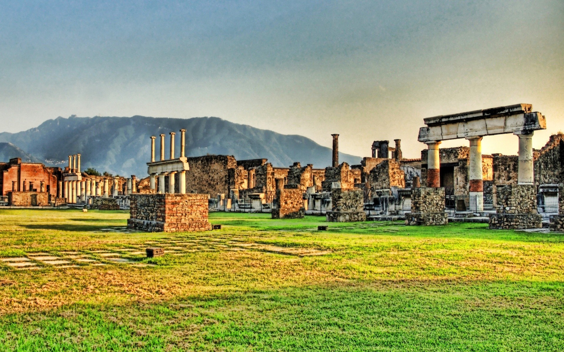 Edifícios arquitetônicos antigos no fundo das montanhas
