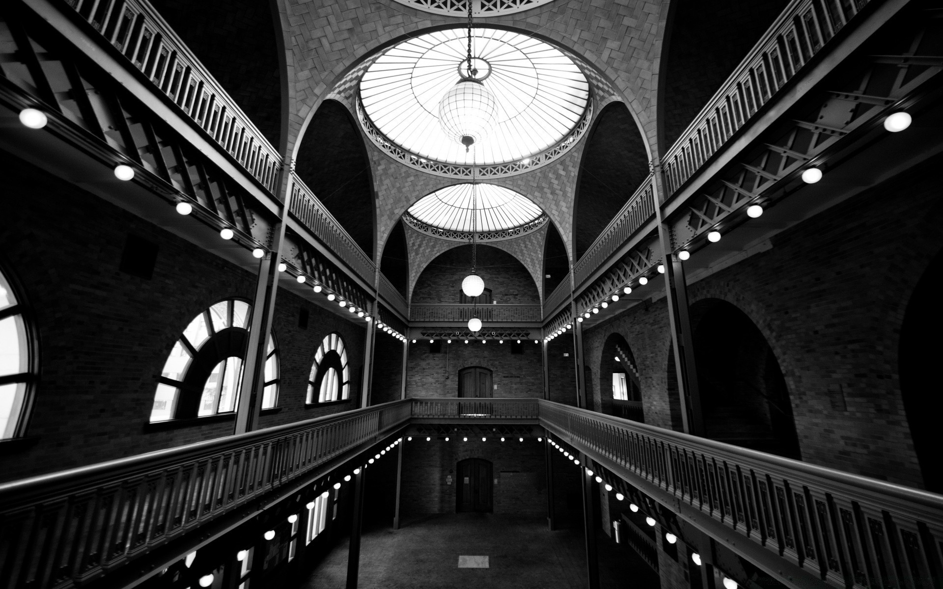 Fotografia em preto e branco arquitetura em edifícios interiores