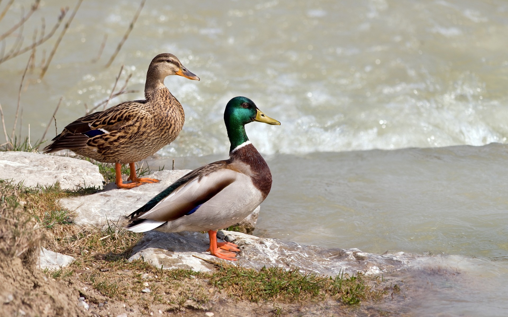 Um jovem casal de amantes chegou ao mar ao pôr do sol