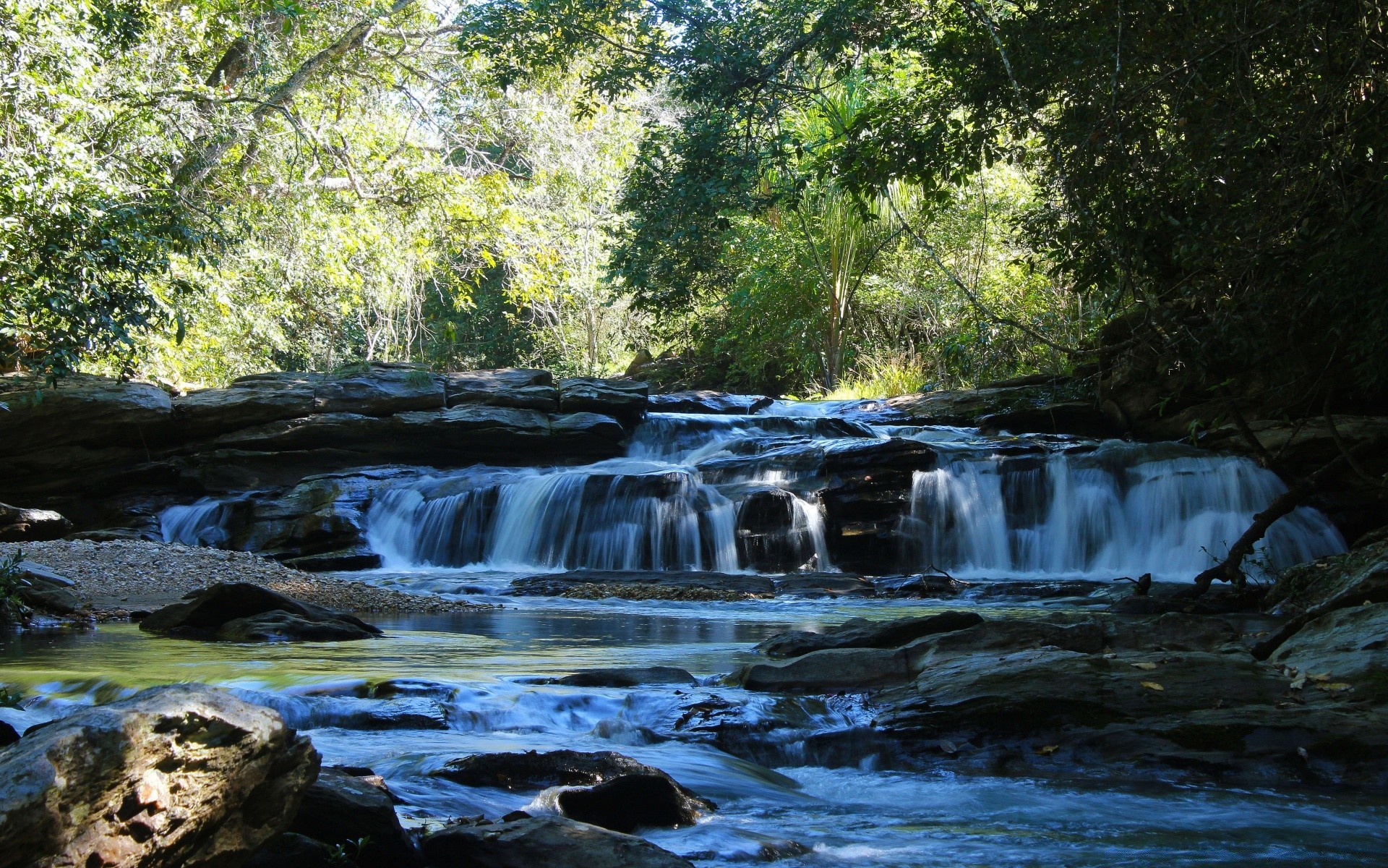 Cachoeira bonita de vários estágios na floresta