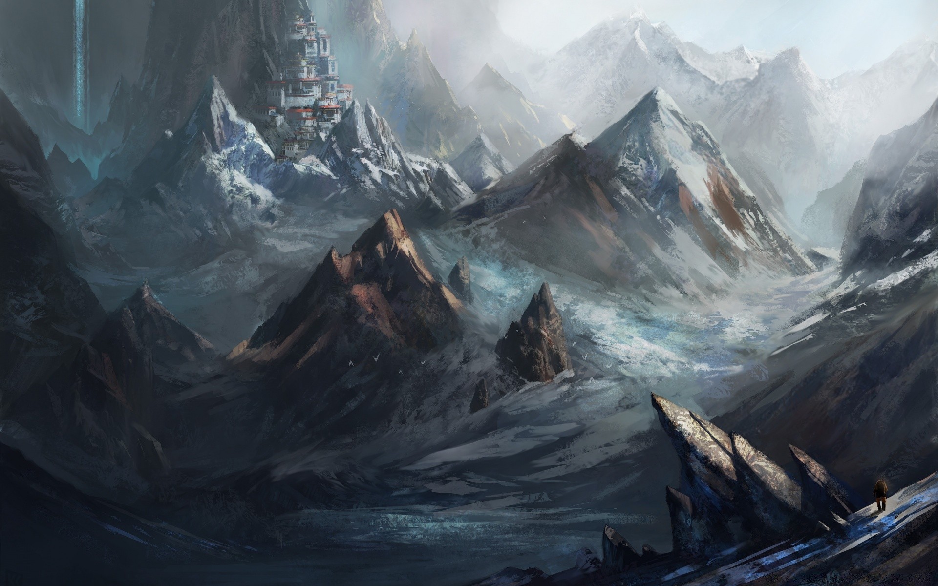 Castelo no gelo. castelo cercado por penhascos afiadosCastelo no gelo. Castelo cercado por penhascos afiados