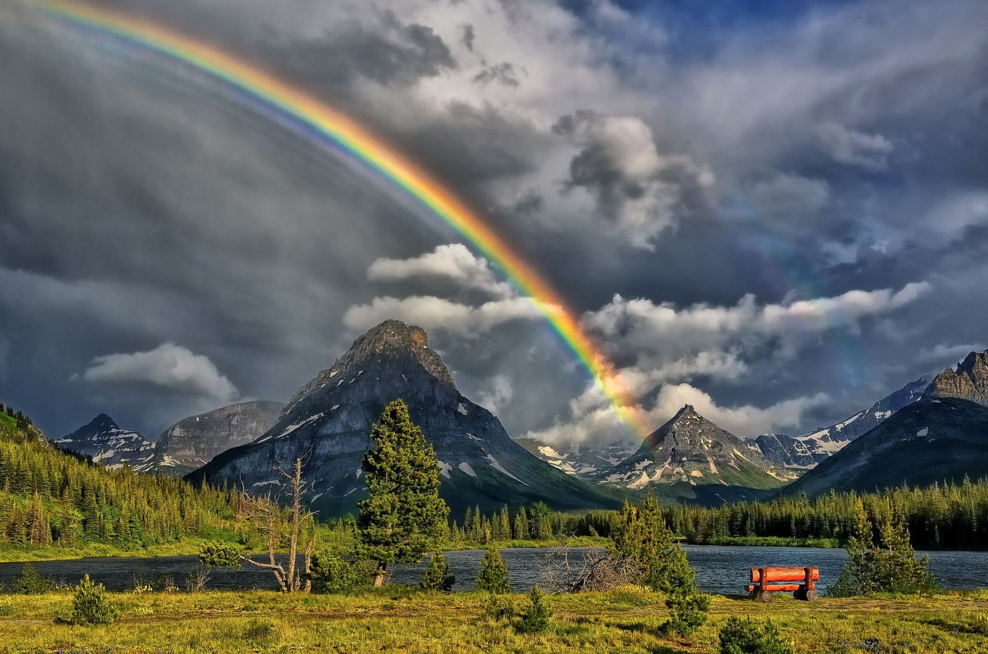 Arco-íris através das montanhas bela vista
