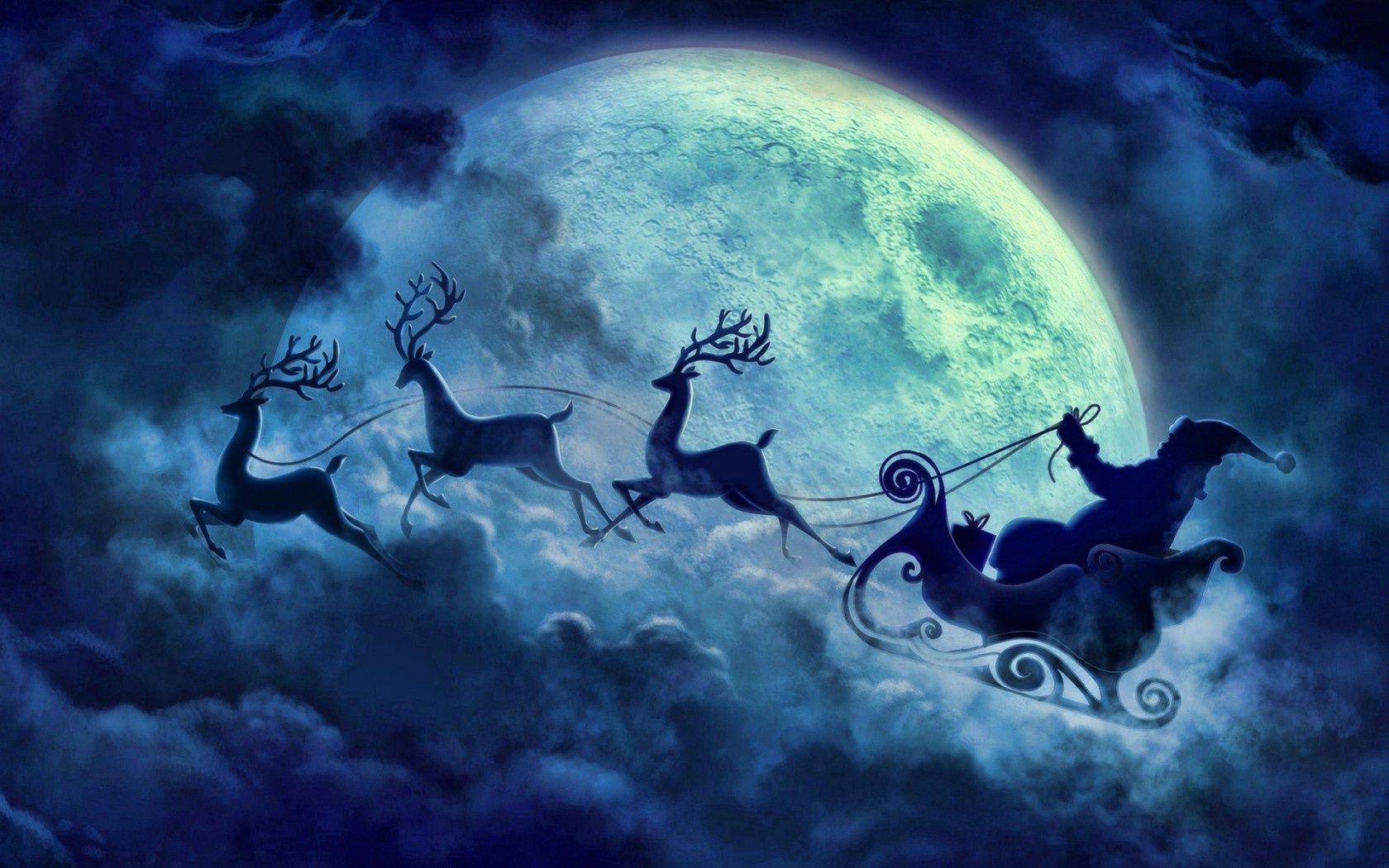 Cervos em um fundo de neve com uma árvore de Natal para o Ano Novo