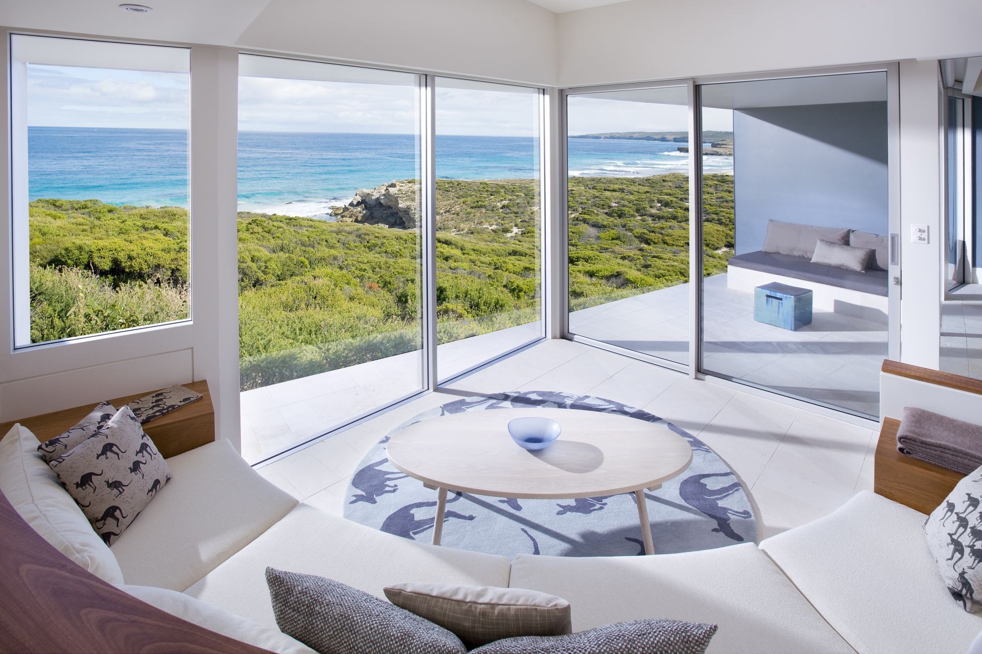 Sala de estar respeitável com sofá branco e poltronas