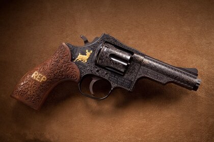 Arma com cervo dourado em fundo marrom