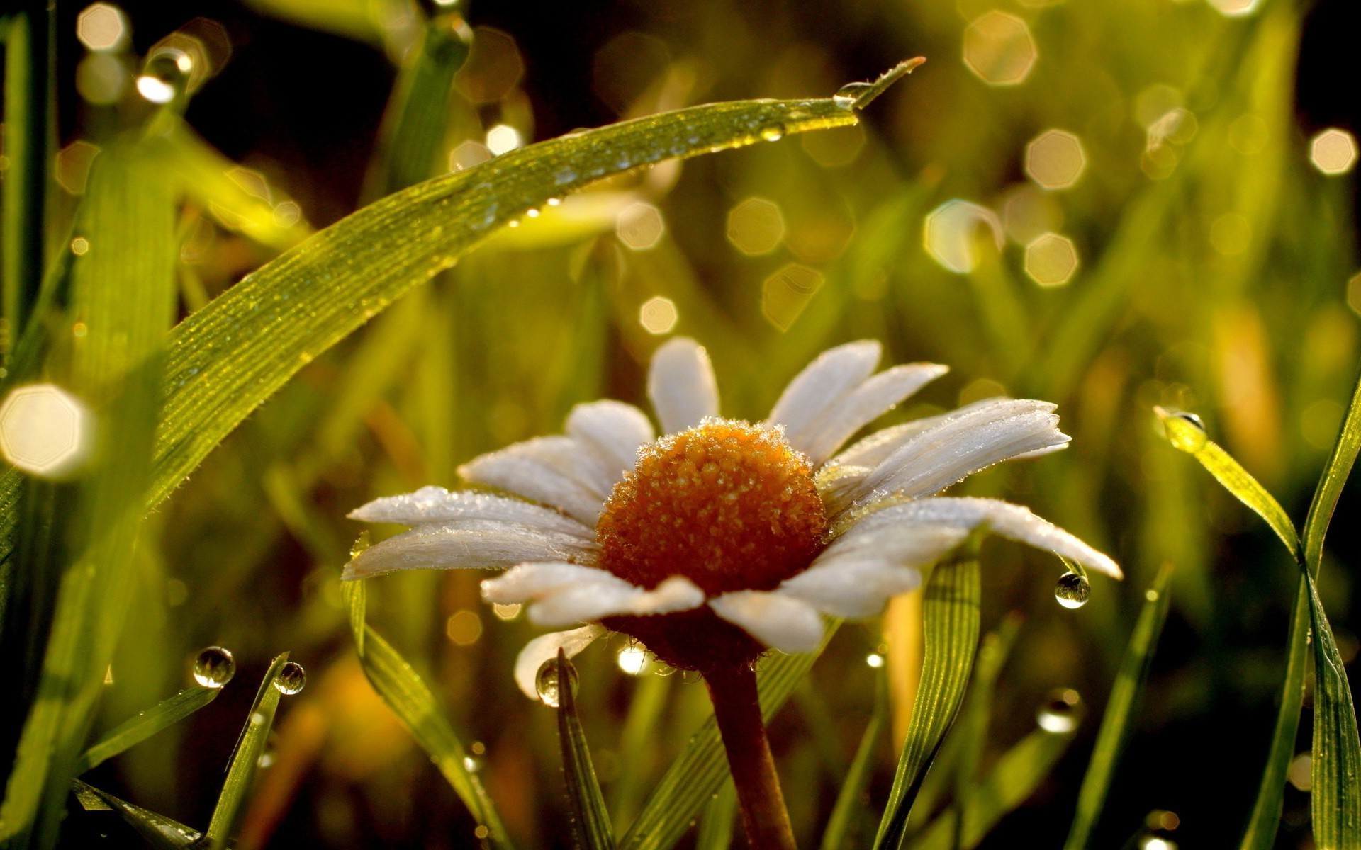 O guarda-chuva laranja encontra-se na floresta na grama verdeO guarda-chuva laranja encontra-se na floresta na grama verde