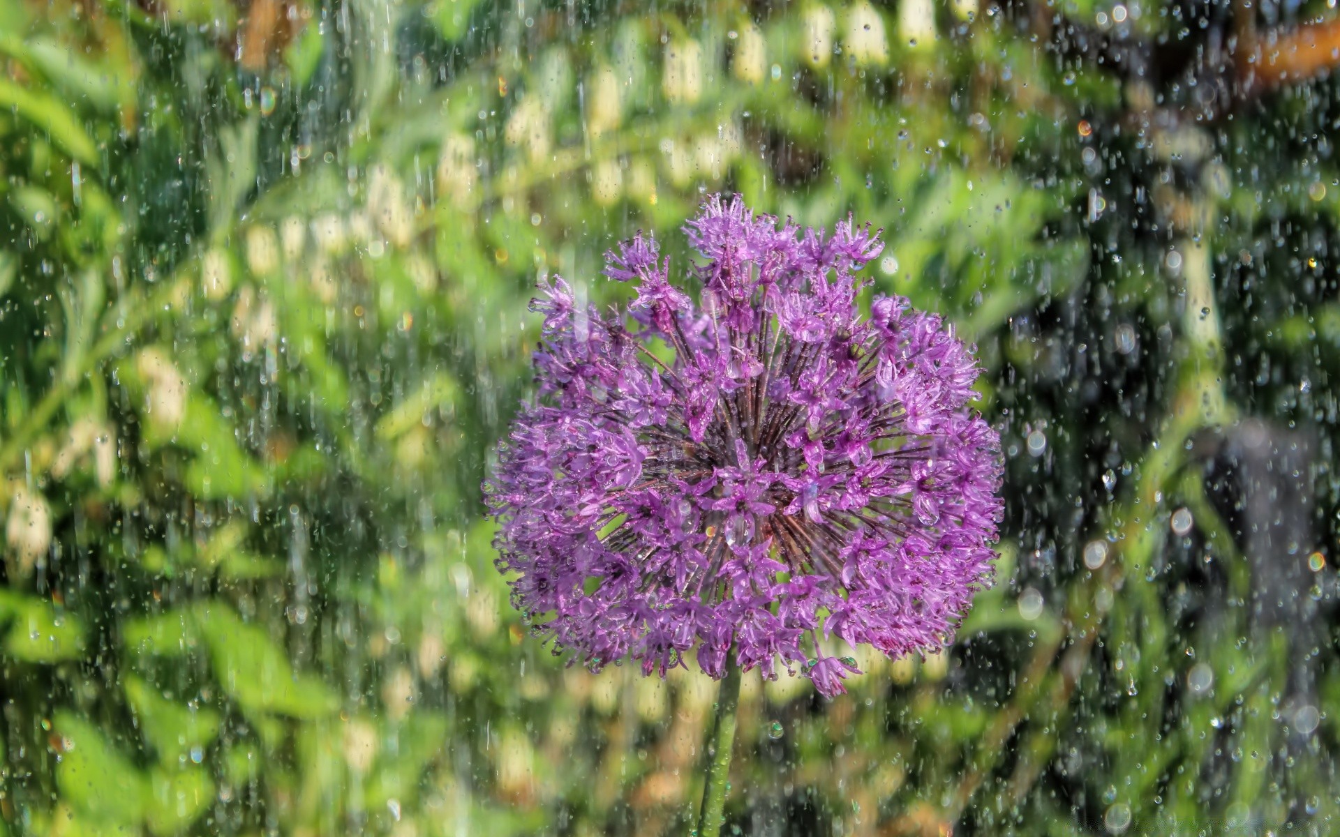 Flor silvestre sob gotas de chuva