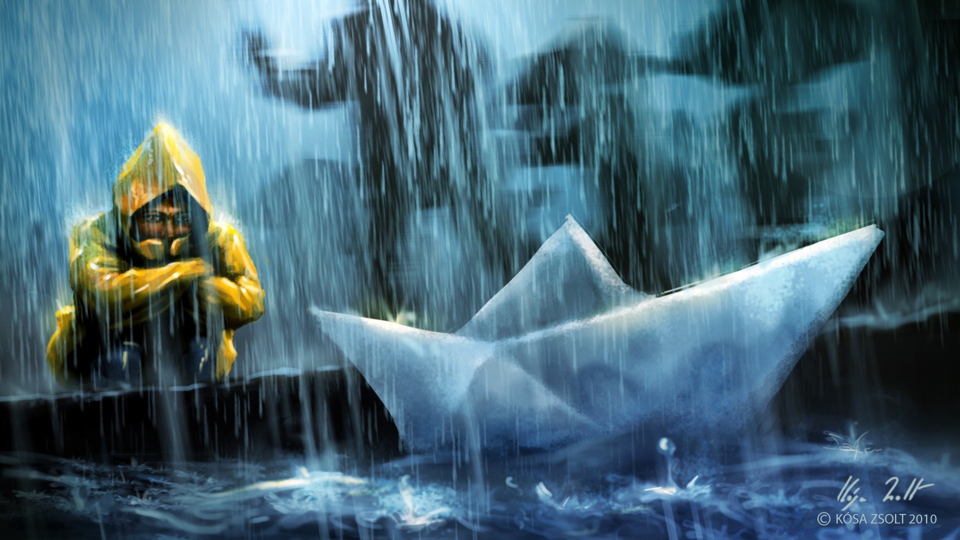 Ilustração: chuva cai no telhado