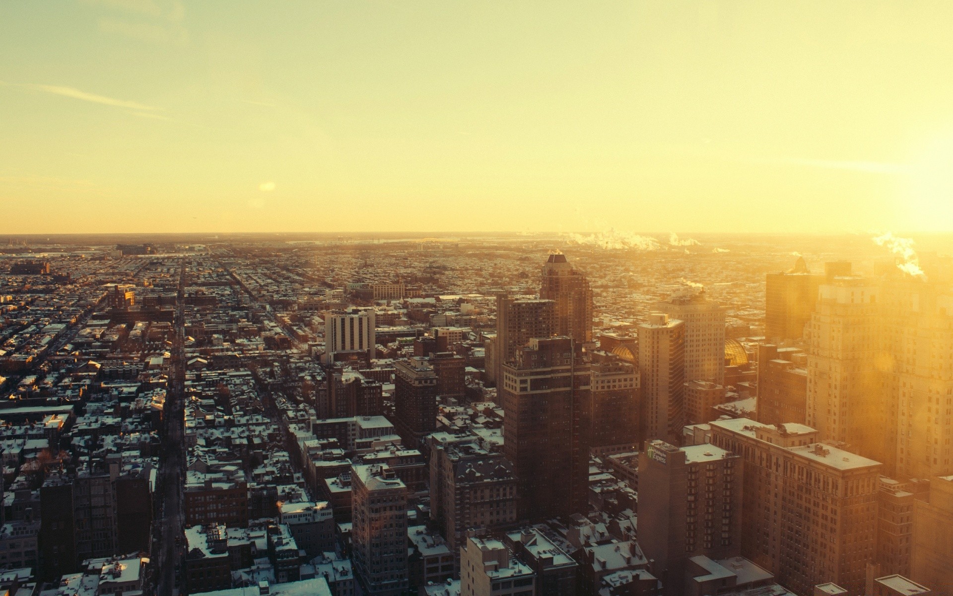 Neblina sobre a cidade no final do dia