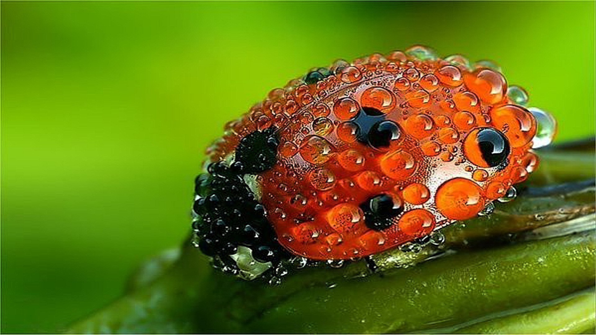 Joaninha em gotas de grama