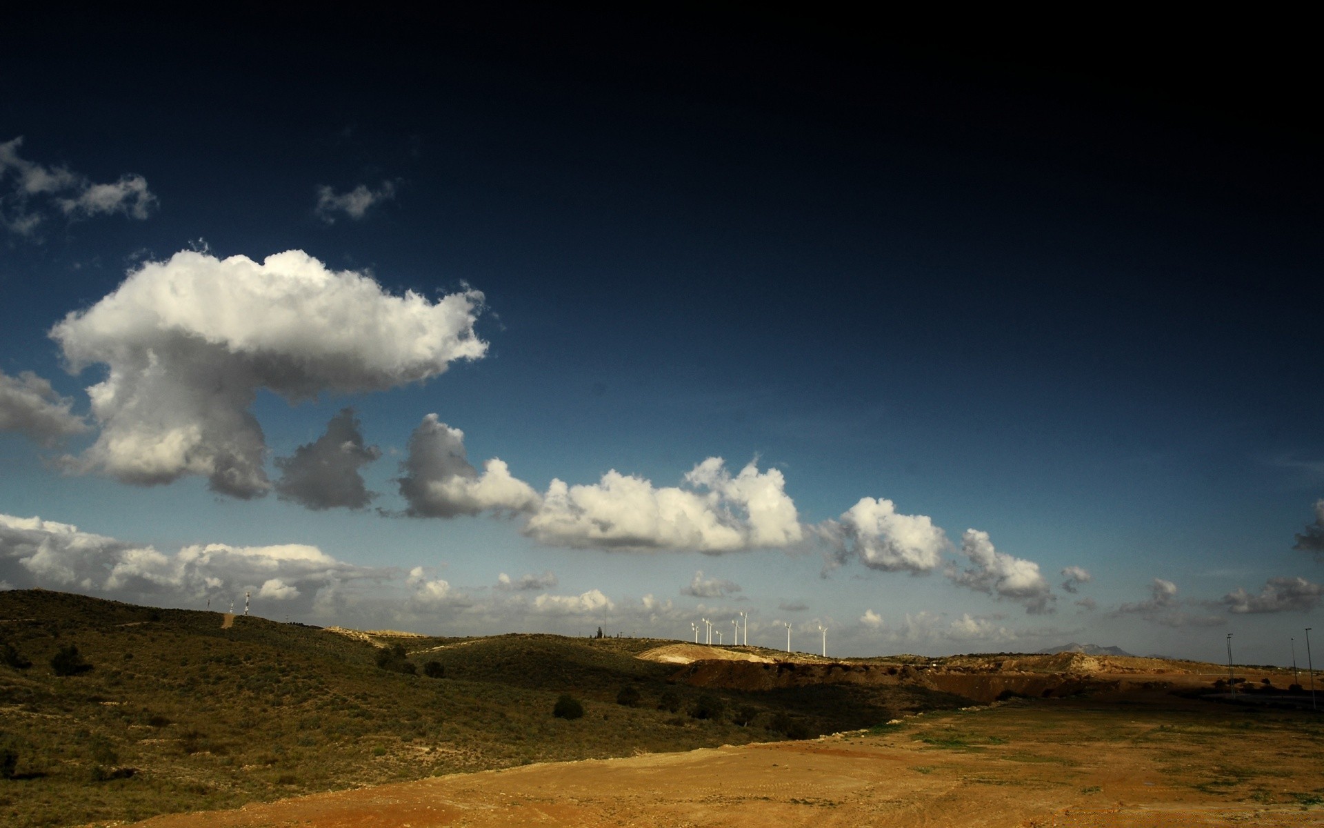 Colinas marrons no deserto e um pedaço do céu