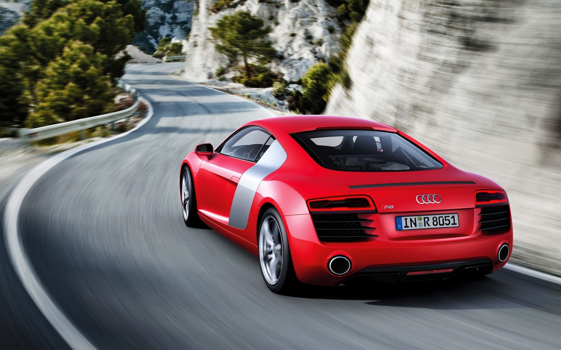Carro esportivo vermelho em uma estrada estreita e sinuosa