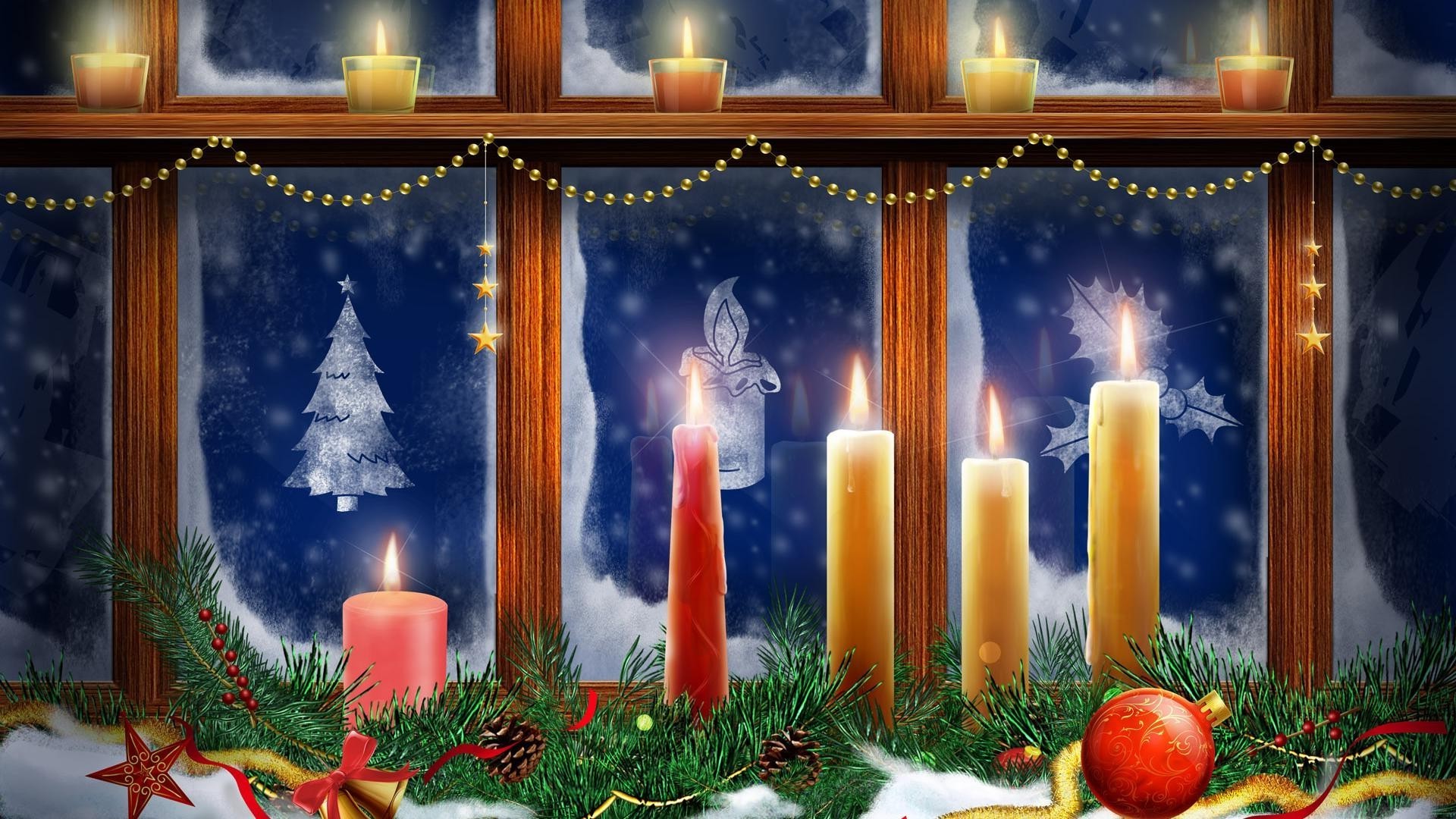 Imagem de Ano Novo de velas acesas em uma janela congelada