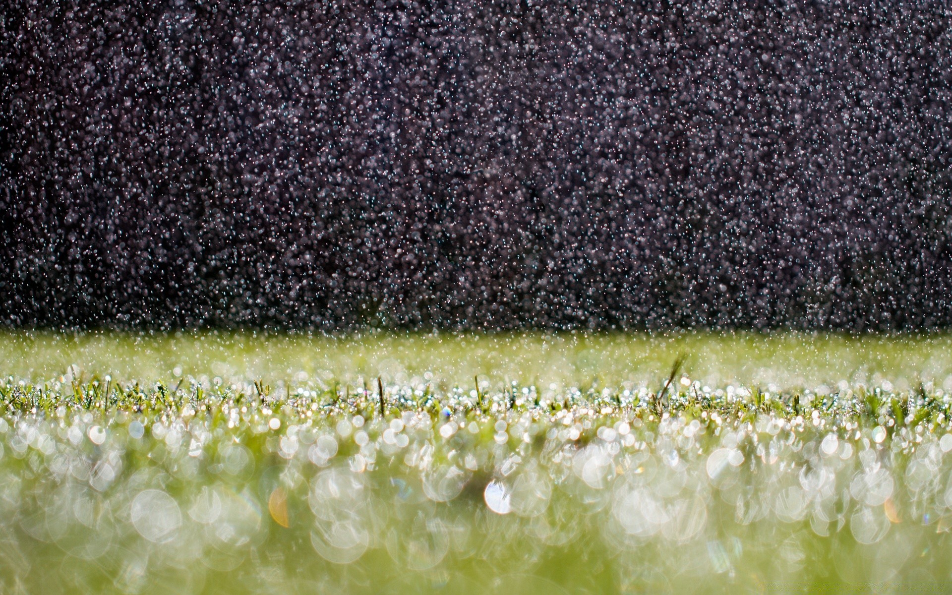 Em uma noite de verão, as pessoas sentam-se perto de uma fonte iluminada por cores diferentes