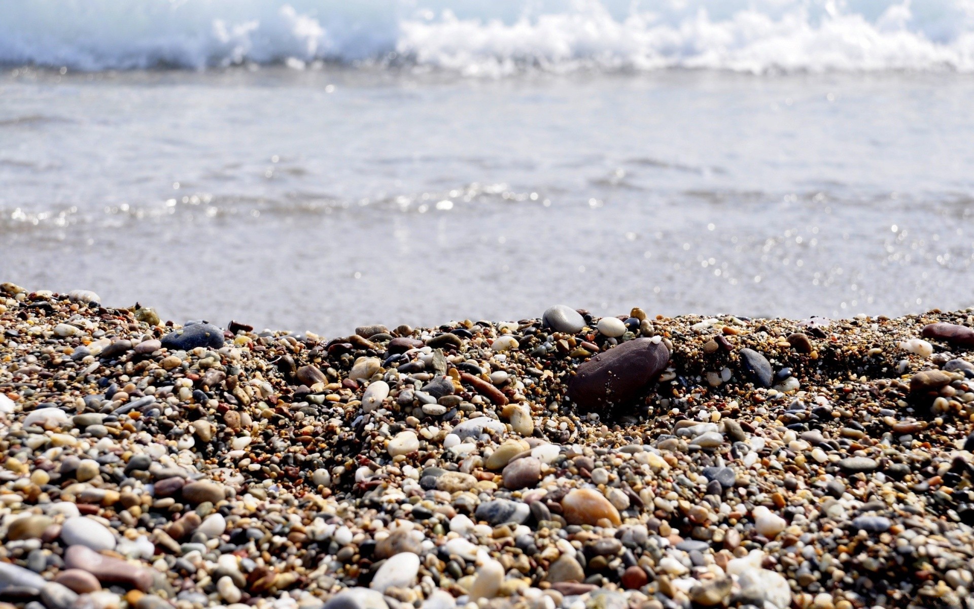 Praia de seixos e ondas tranquilas paisagem branca preta