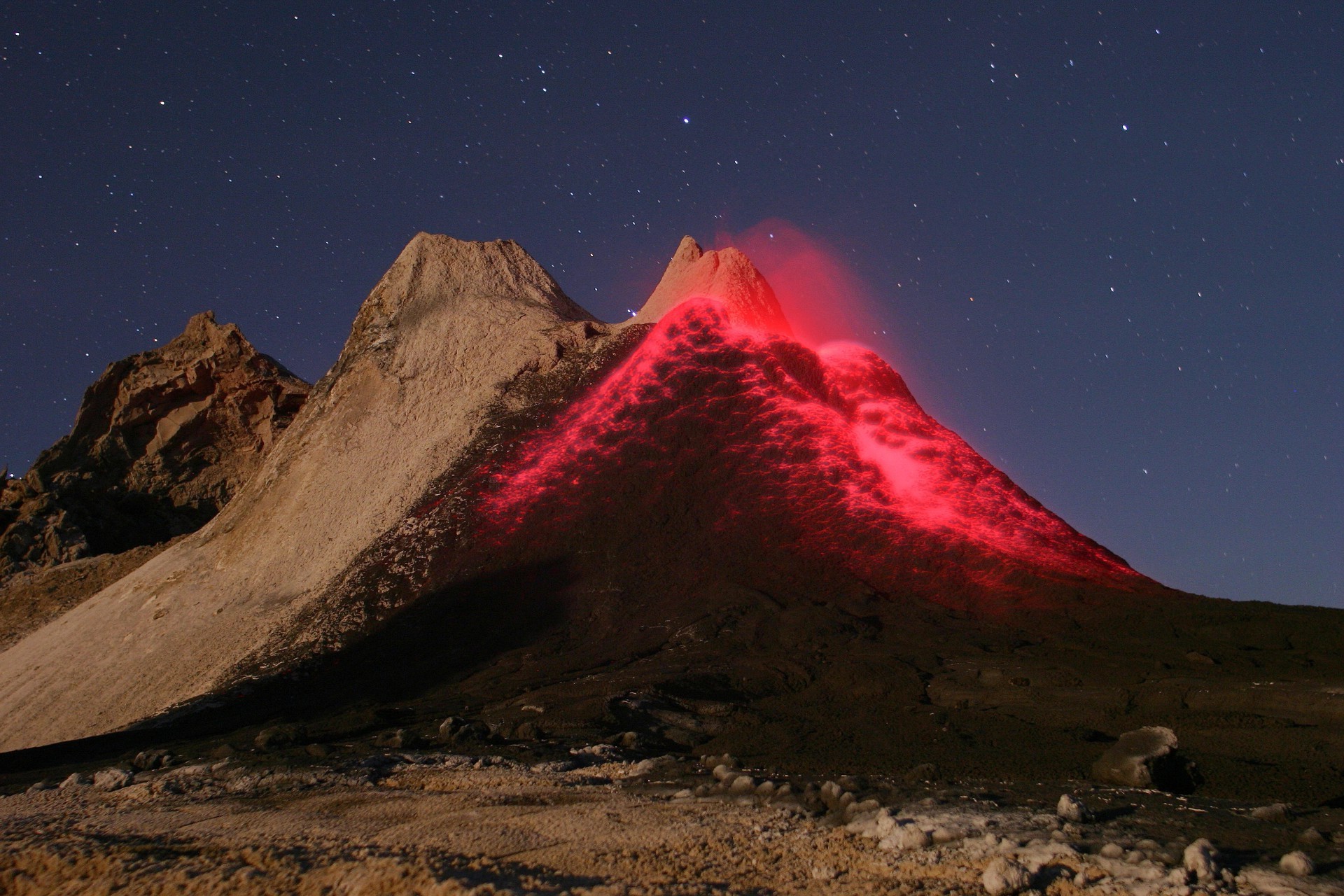 Erupção do vulcão PO no céu noturno