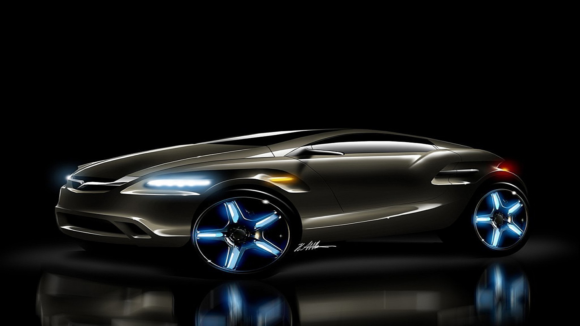 Discos de néon. Carro desportivo. O carro dos sonhos. Projeto do carro