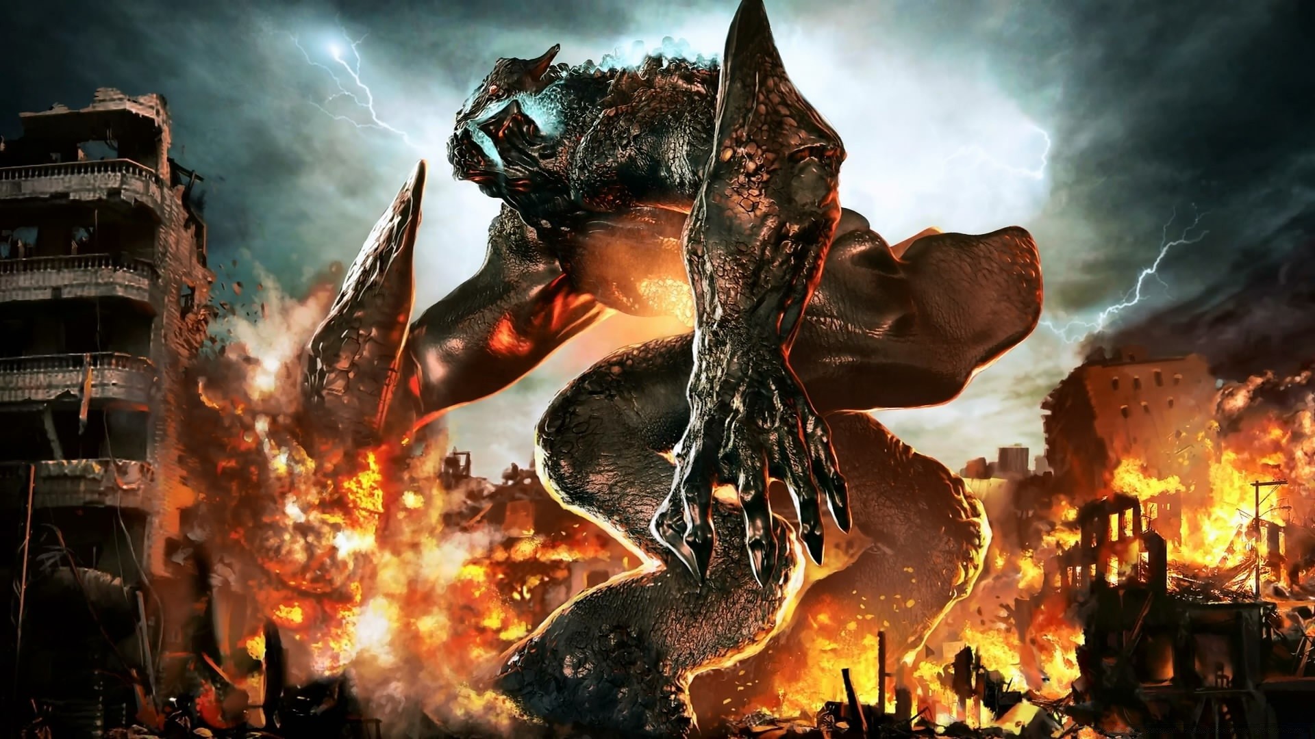 O homem é um guerreiro em meio a fogo e fumaça. Fantasia em fundo escuro