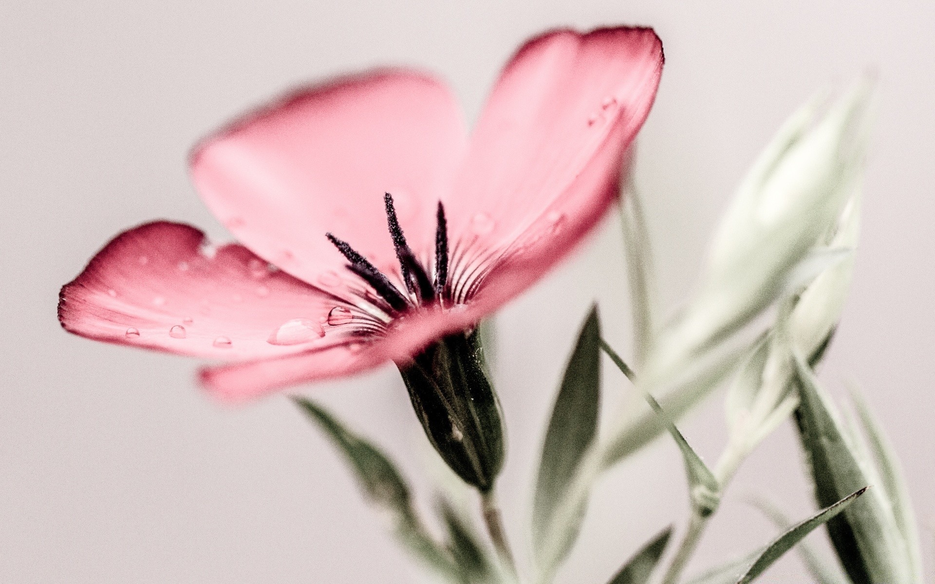 Flor rosa delicada com gotas de orvalho
