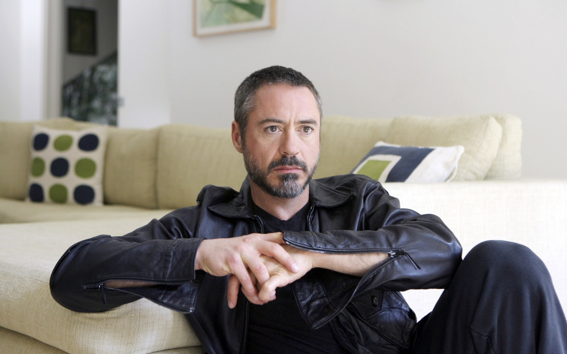Sofá e pinturas em estilo minimalista