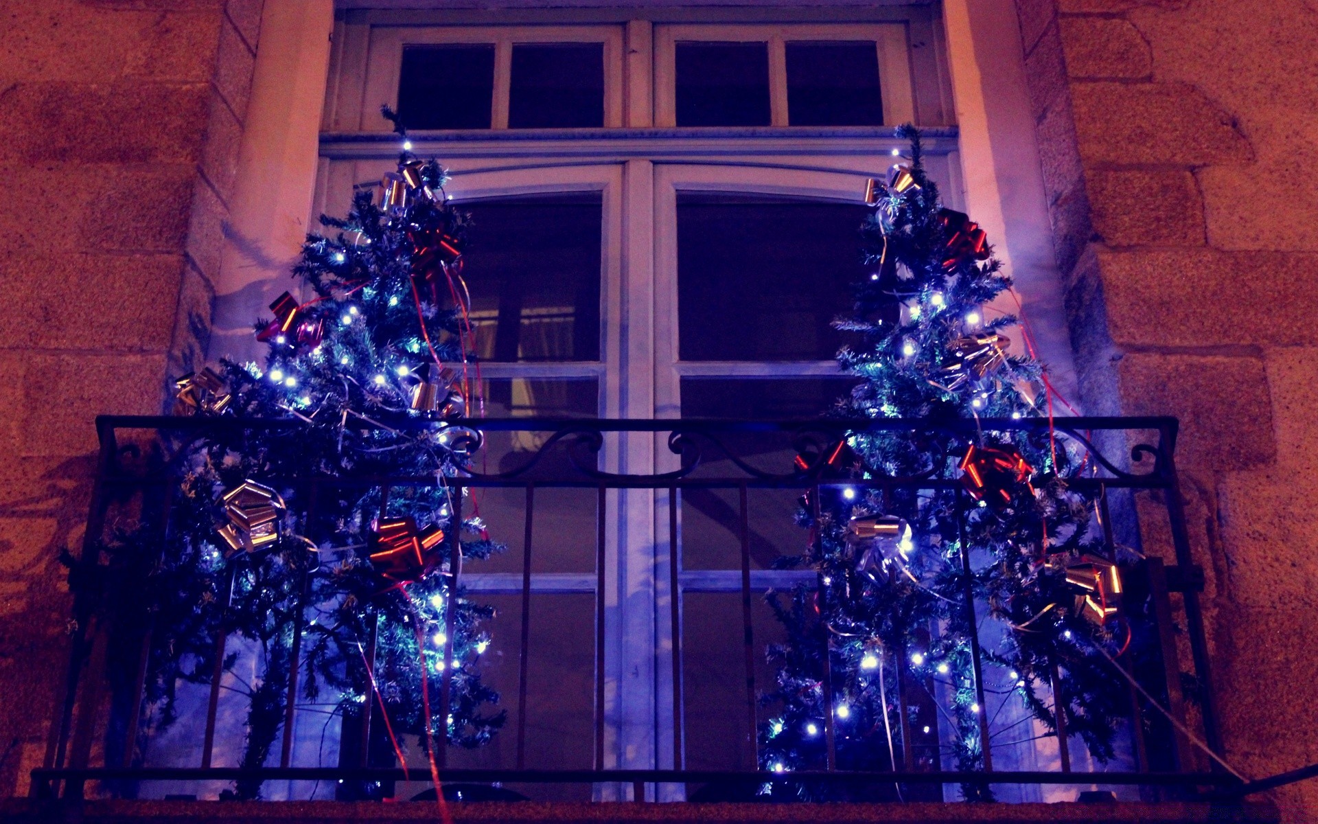 Árvores de Natal brilhantes elegantes na varanda