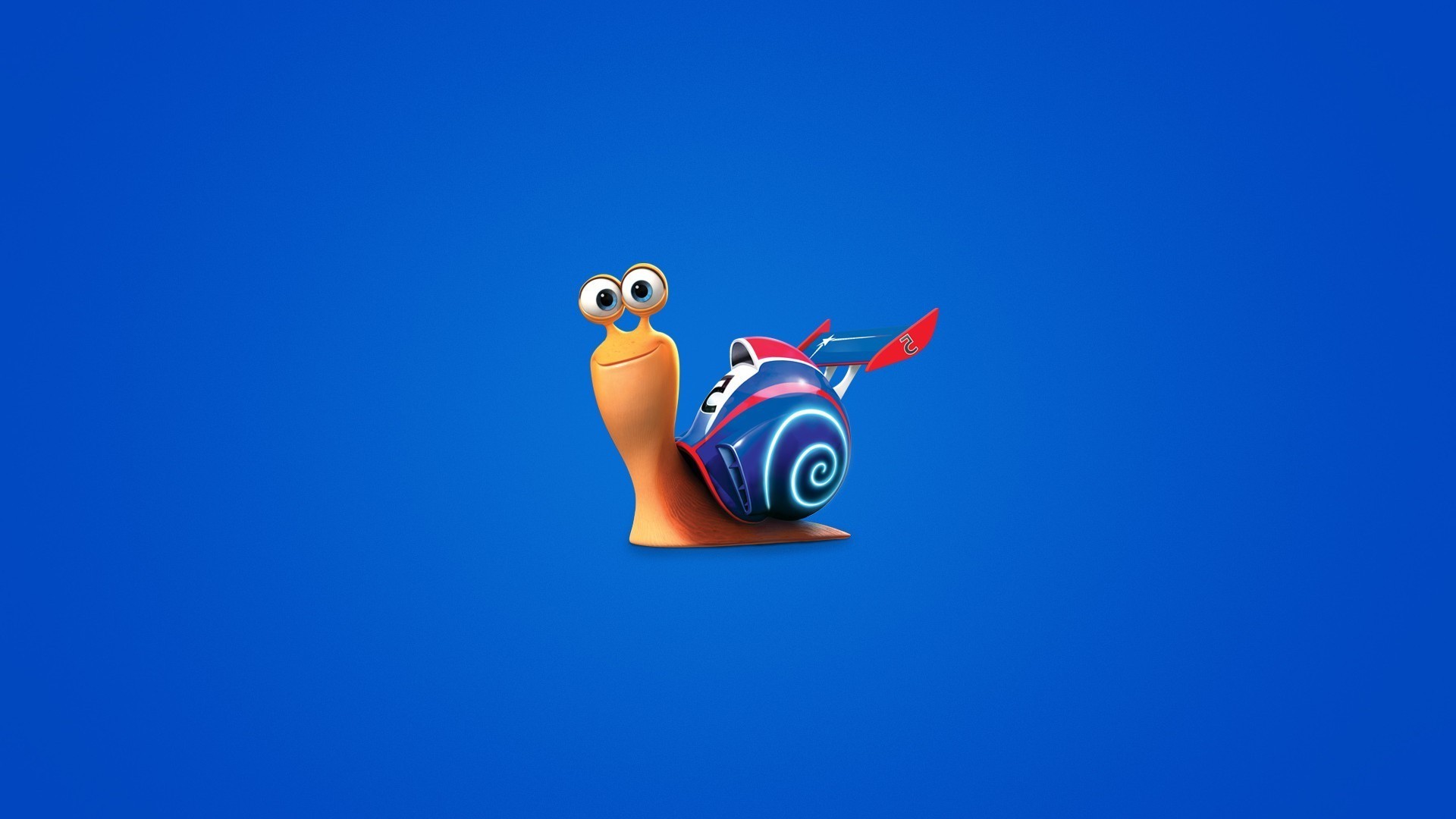 Caracol dos desenhos animados com carapaça pintada sob um carro de corrida