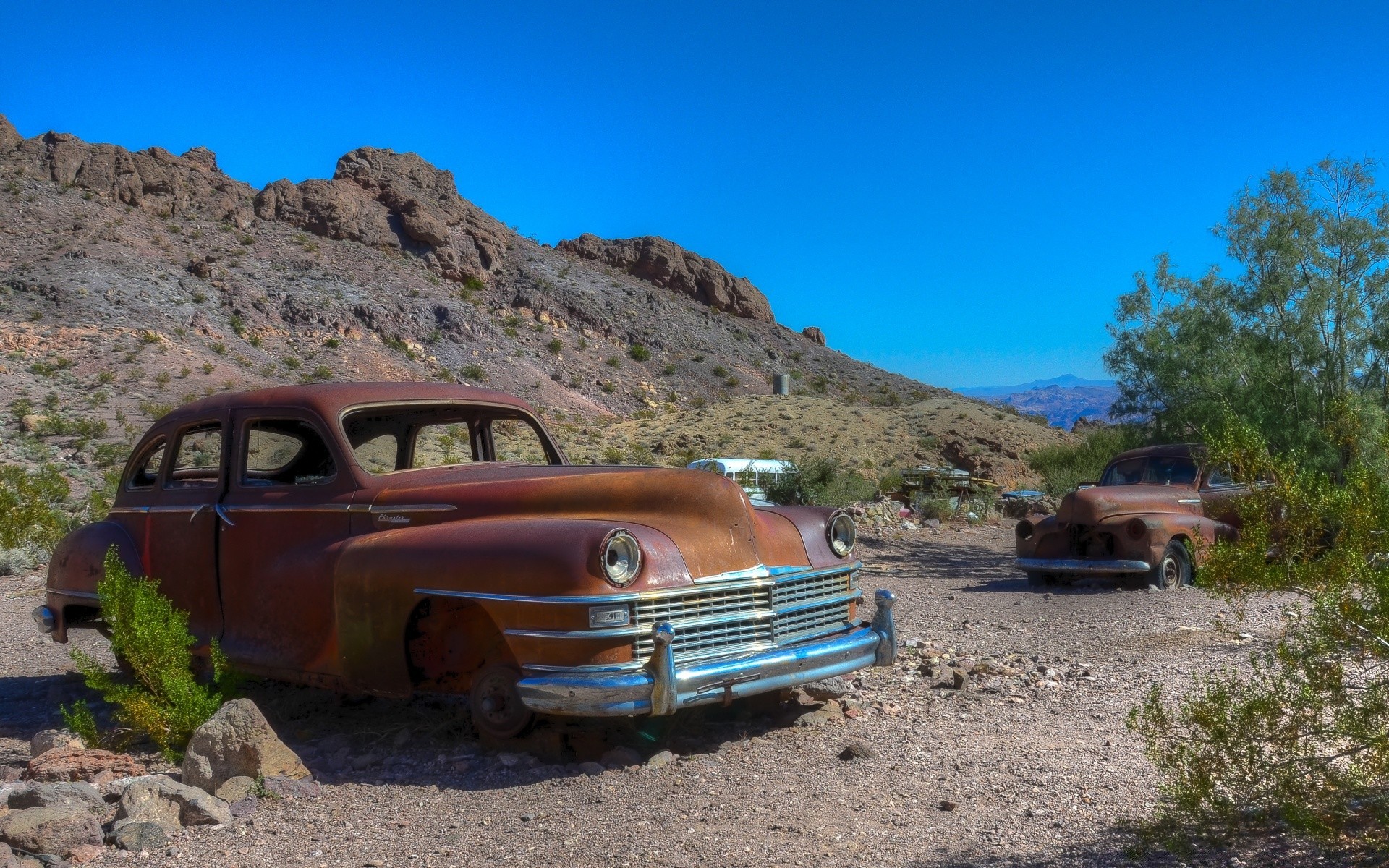 Carros antigos abandonados no deserto