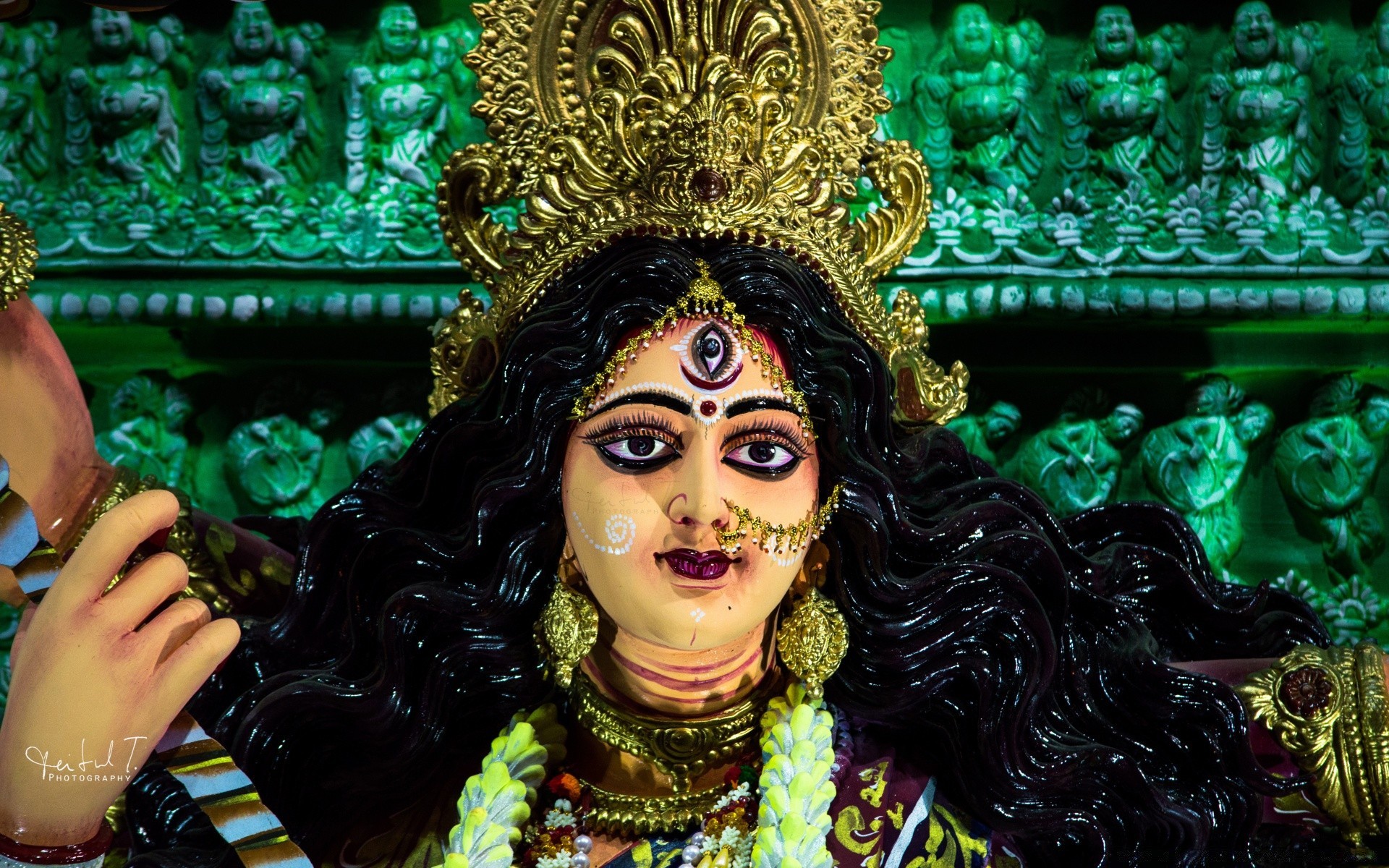 Um desfile de três pessoas em um belo fundo
