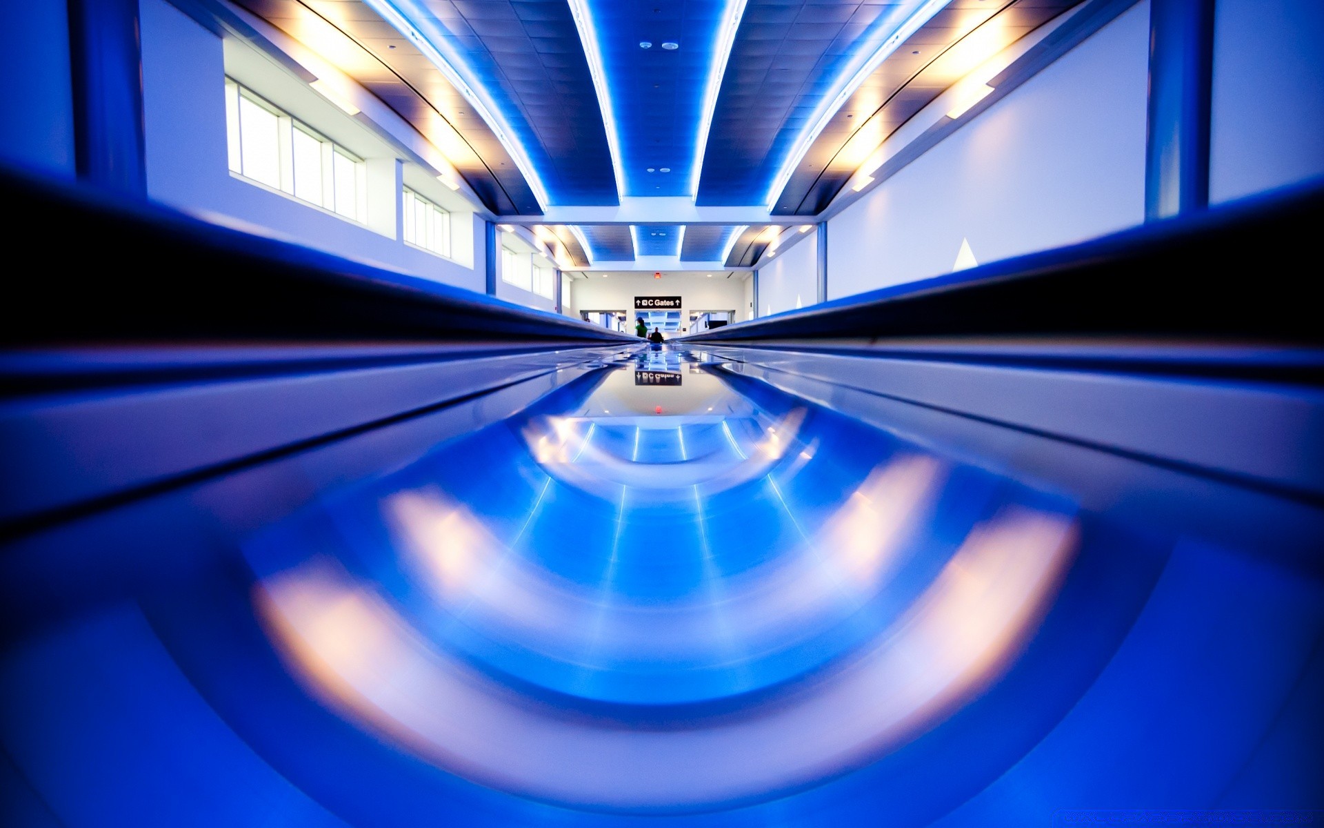 Corredor azul desfocado da casa