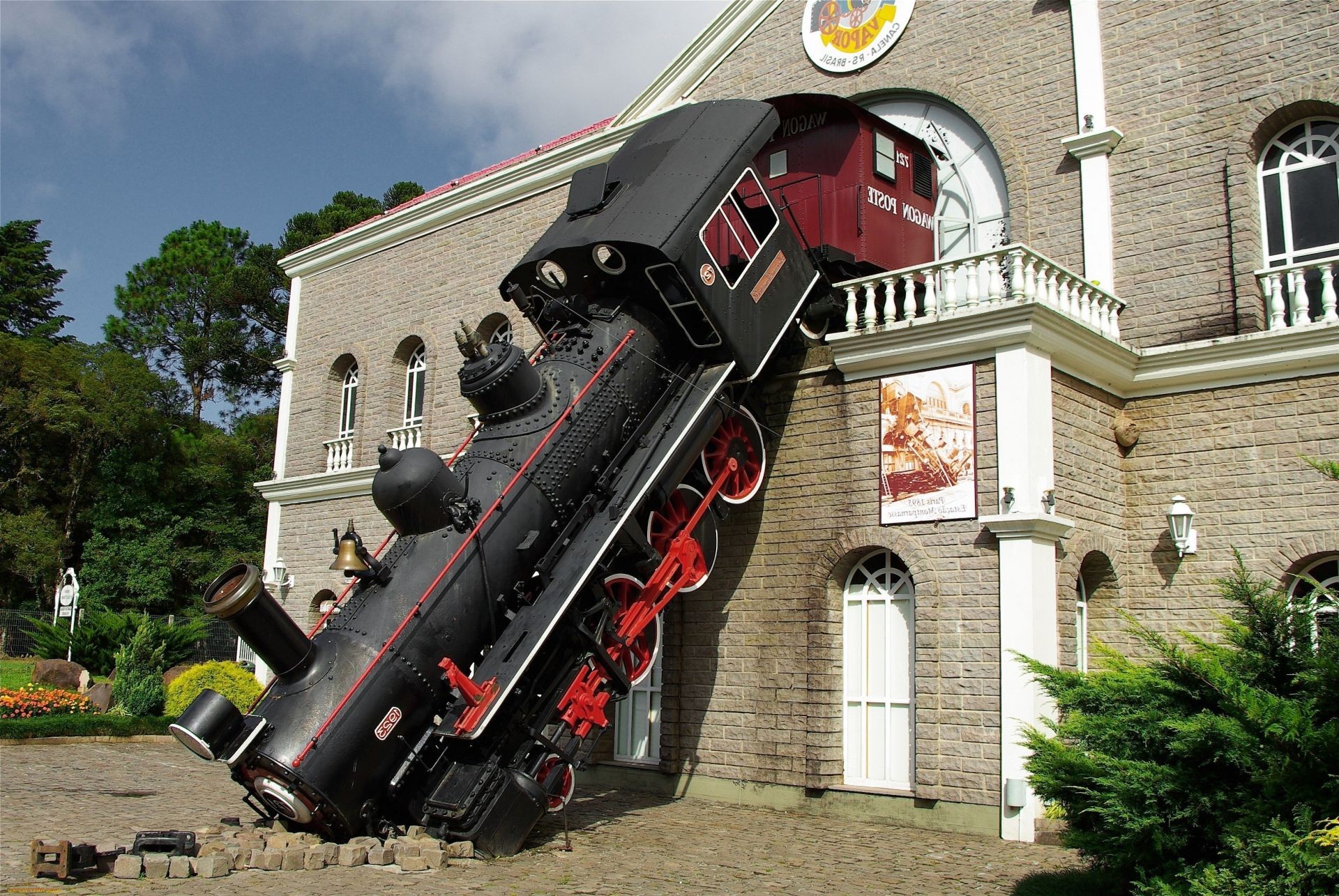 Uma locomotiva numa casa de tijolos. Monumento de arquitetura