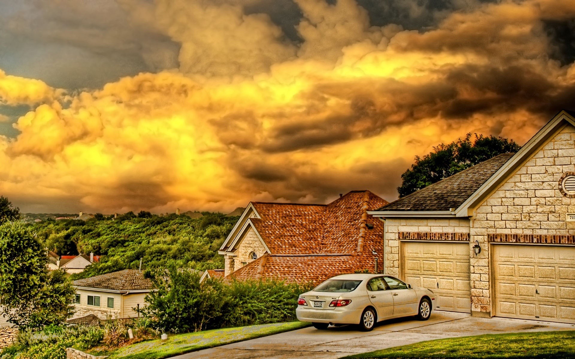 Carro perto da casa na colina