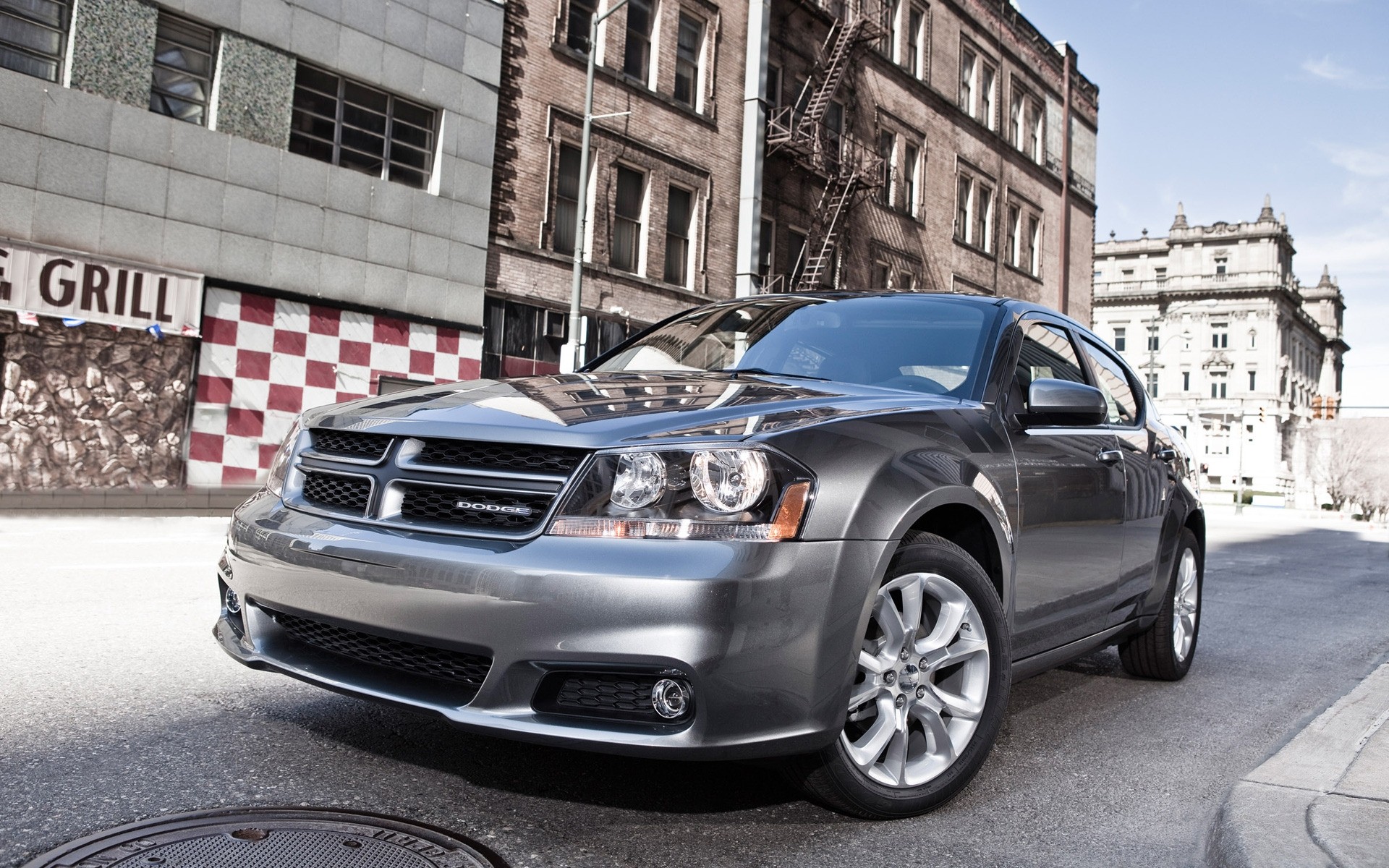 Dodge na cidade cinza brilhante