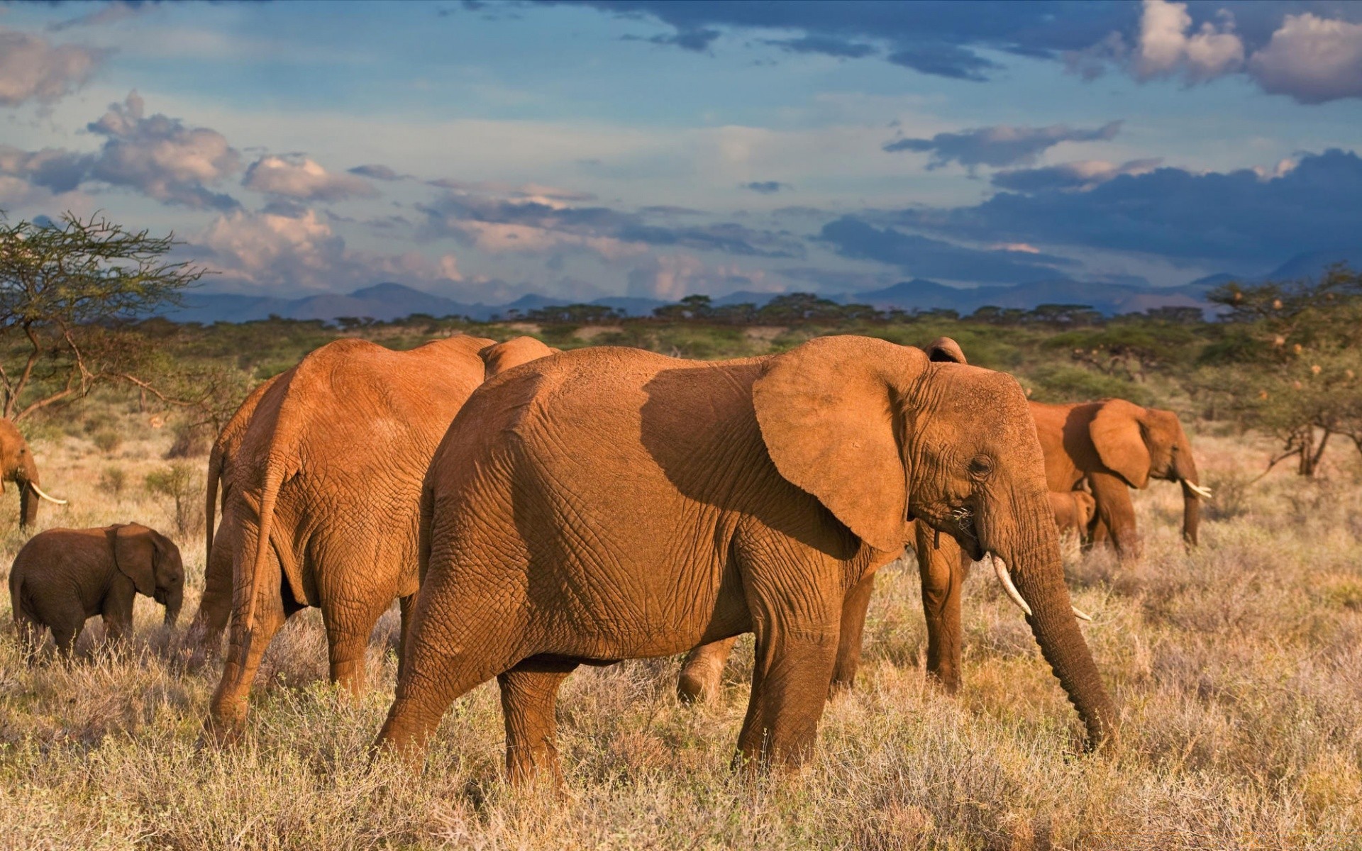 Um casal apaixonado de pessoas e coelhos montando elefantes