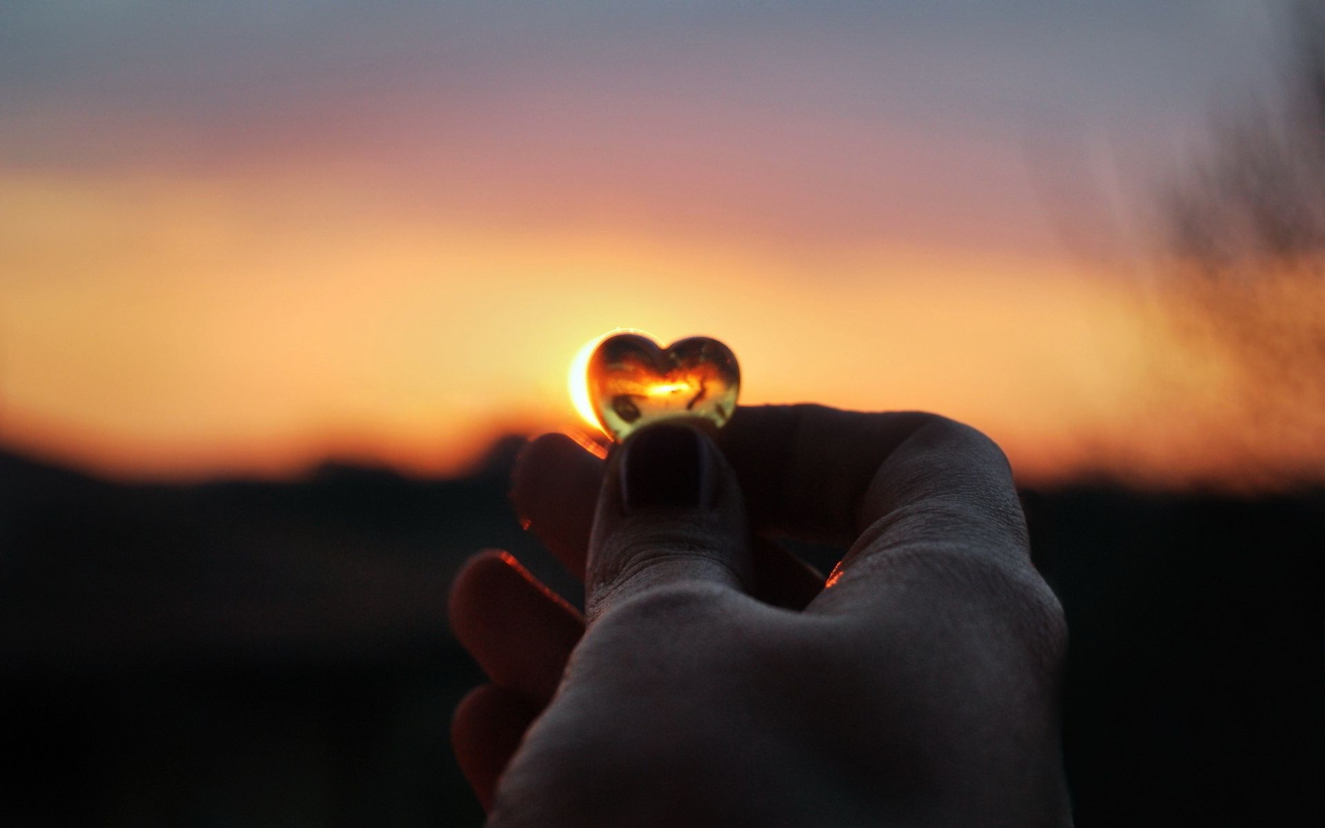 Lindo pôr do sol em forma de coração