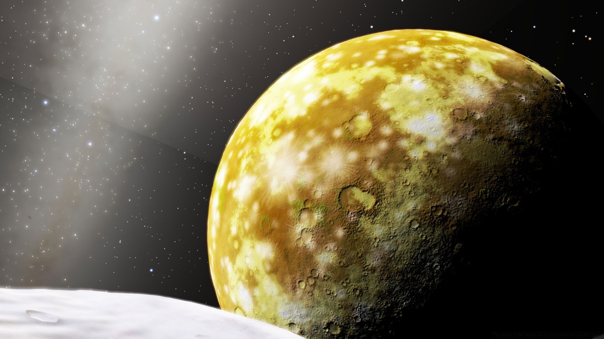 Imagem de uma Lua Negra vermelha no céu sulfuroso