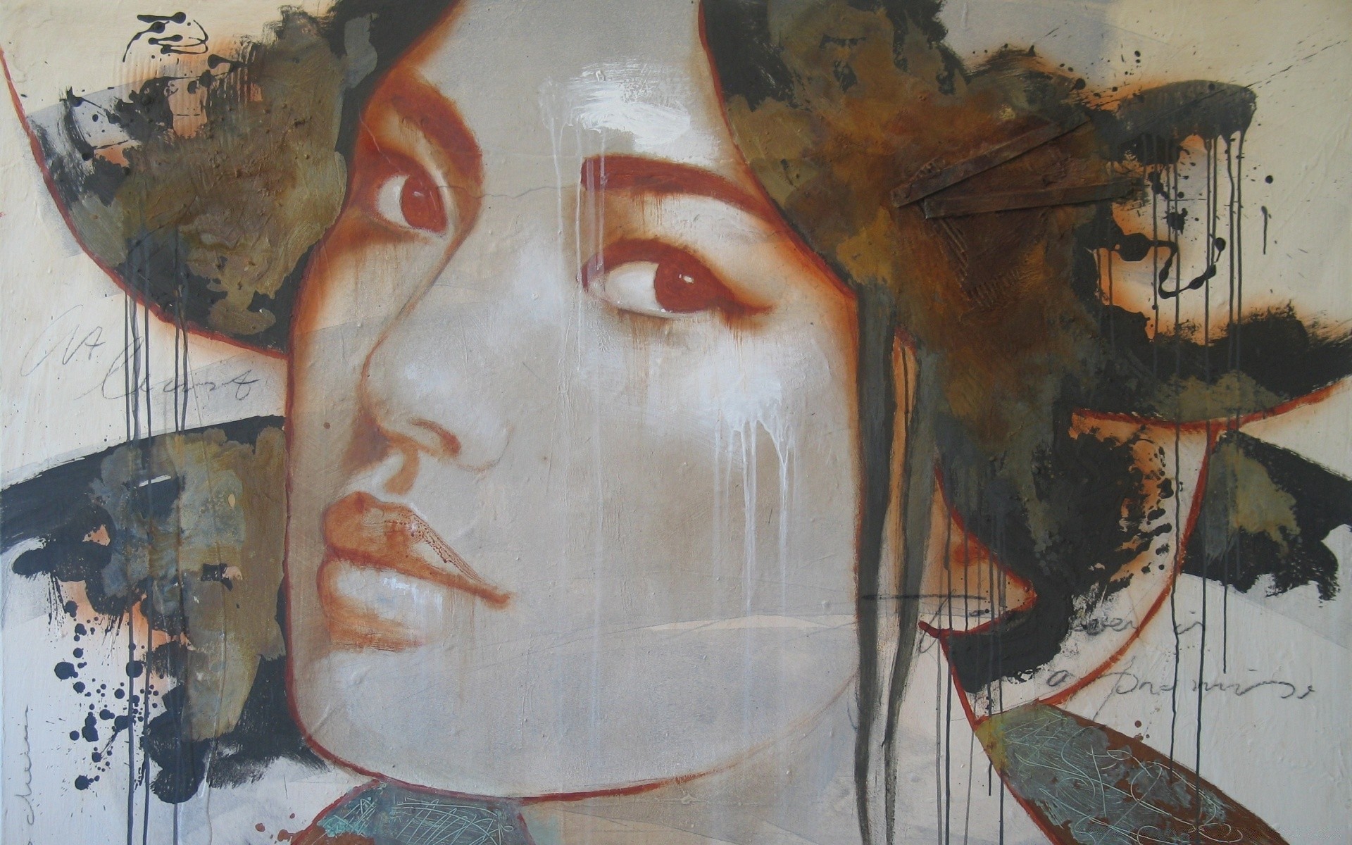 MULHER-CONTRASTE E FOLHAS DA ÁRVORE