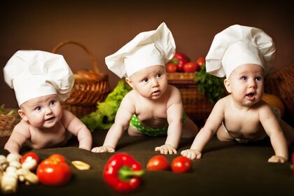Pequenos cozinheiros preparam o jantar