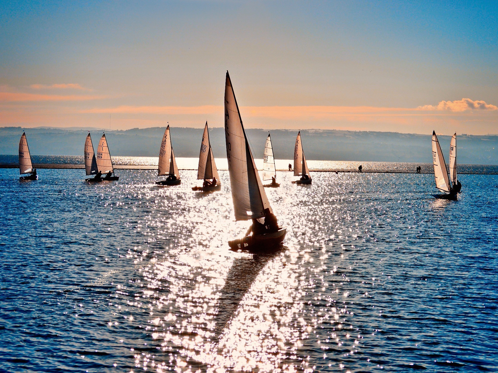 Veleiros na água sob a luz do sol