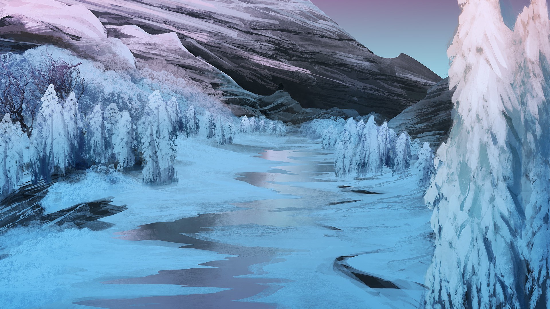 Ilustração de árvores de Natal de Inverno e flocos de neve