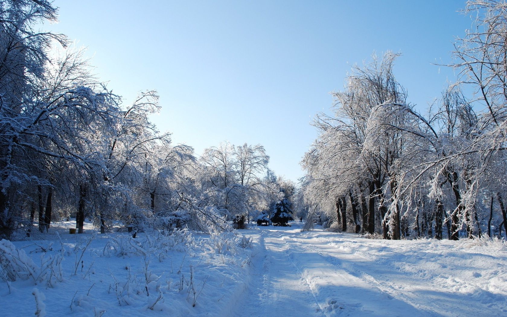 Paisagem de Inverno. Um quadro de neve. Pássaros sobre as árvores. Planetas no céu