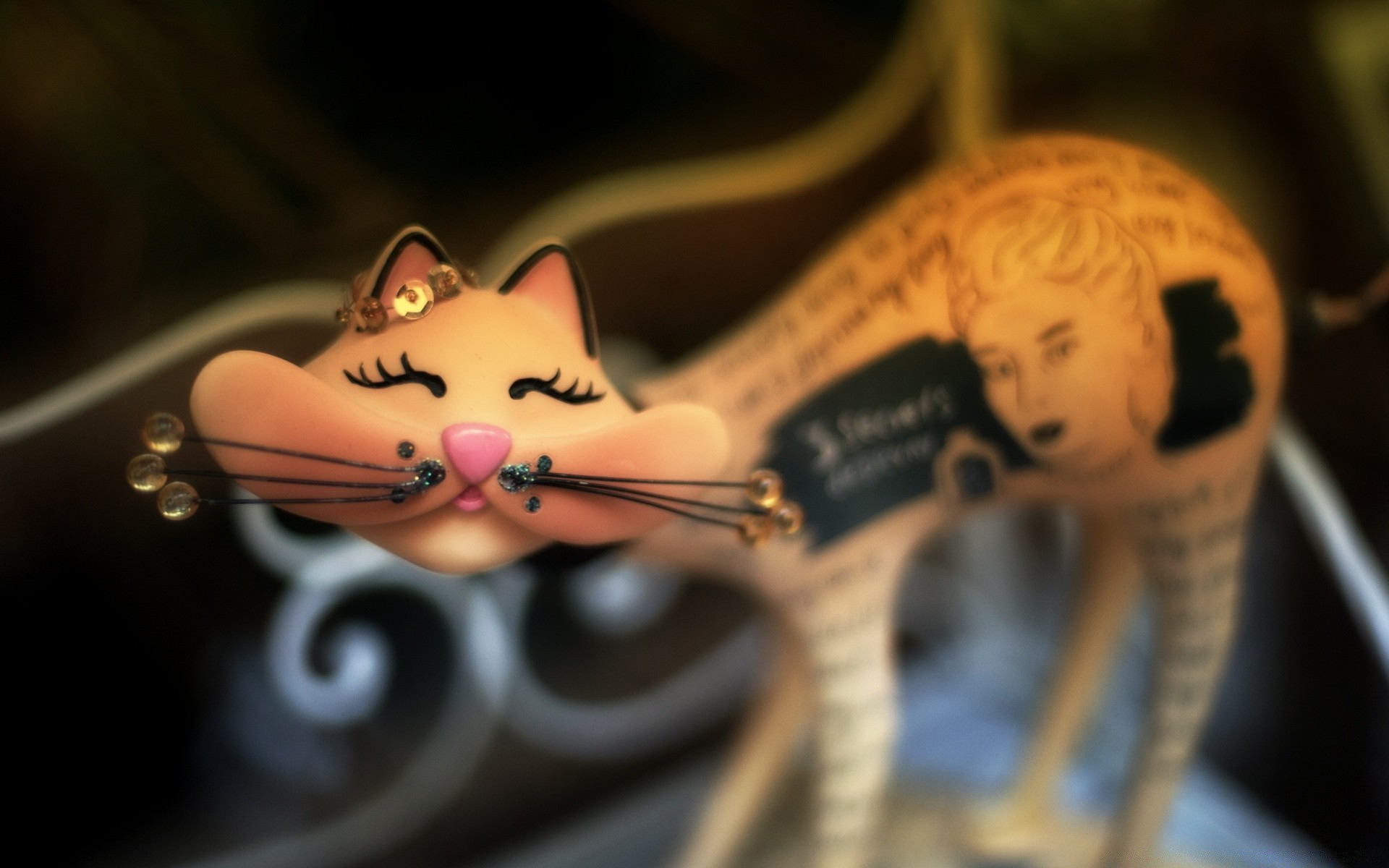 Figura de gato vermelho ligeiramente sorridente em pé em um banco